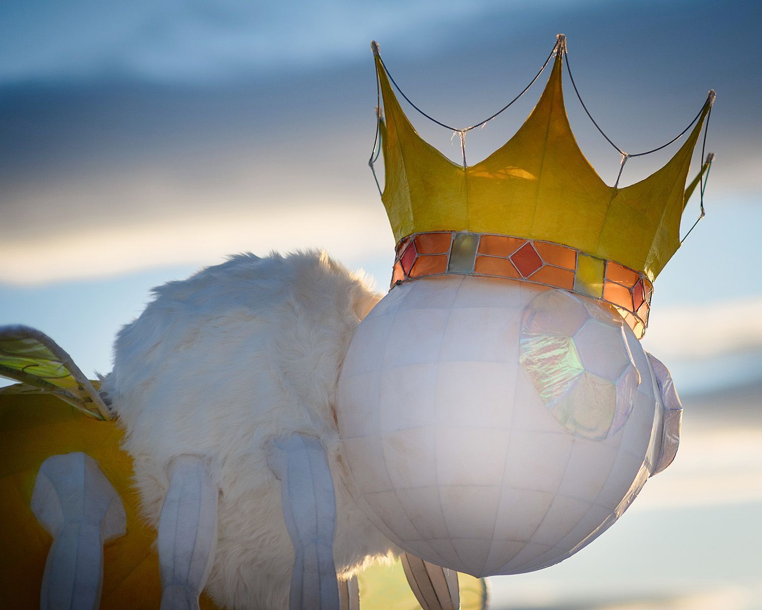 The Sky Realm is led by Curly Tailed Bird Horse Amelia, created by 11 artists under the leadership of Andrew Kim of Thingumajig Theatre.