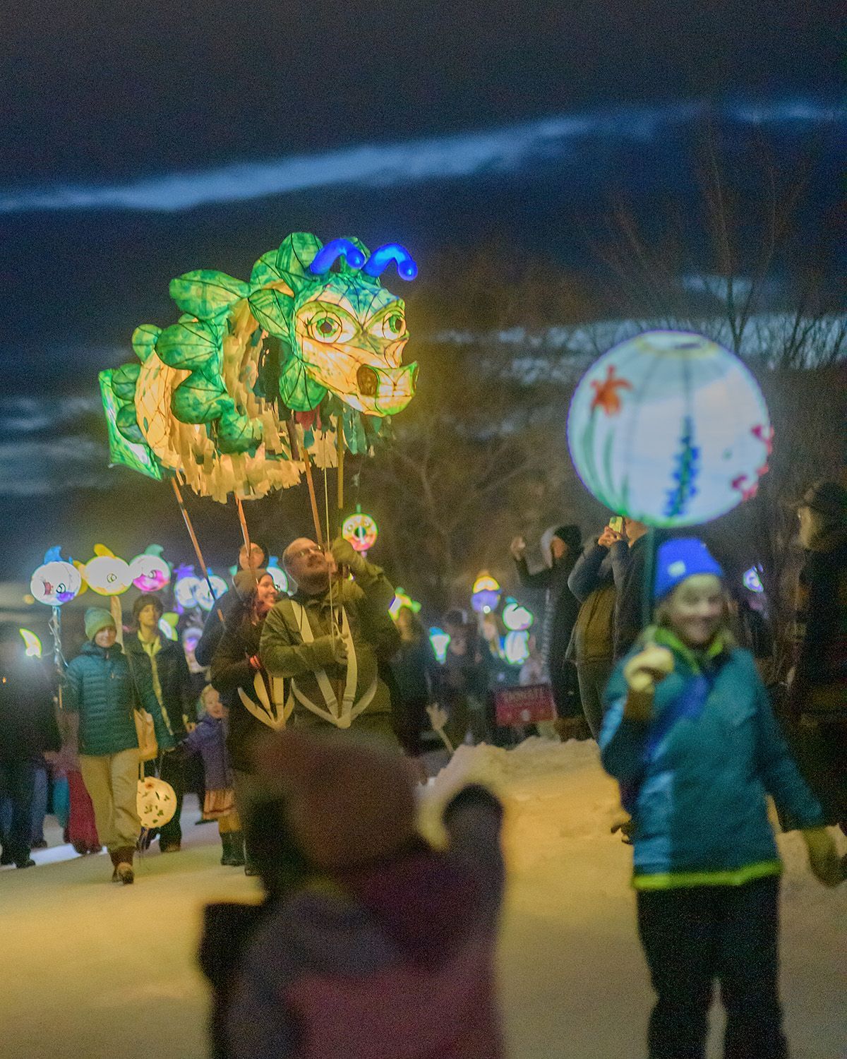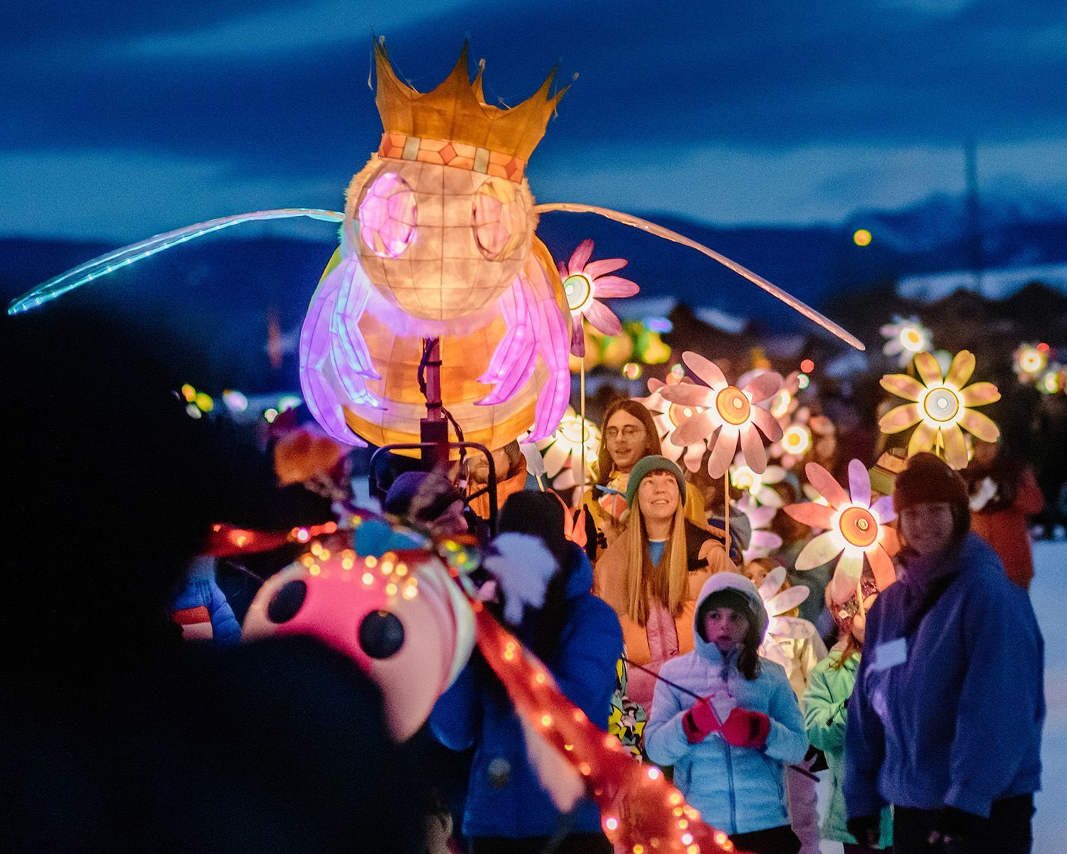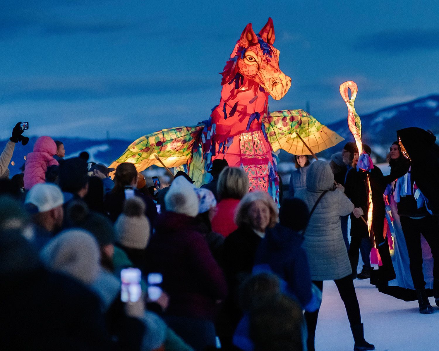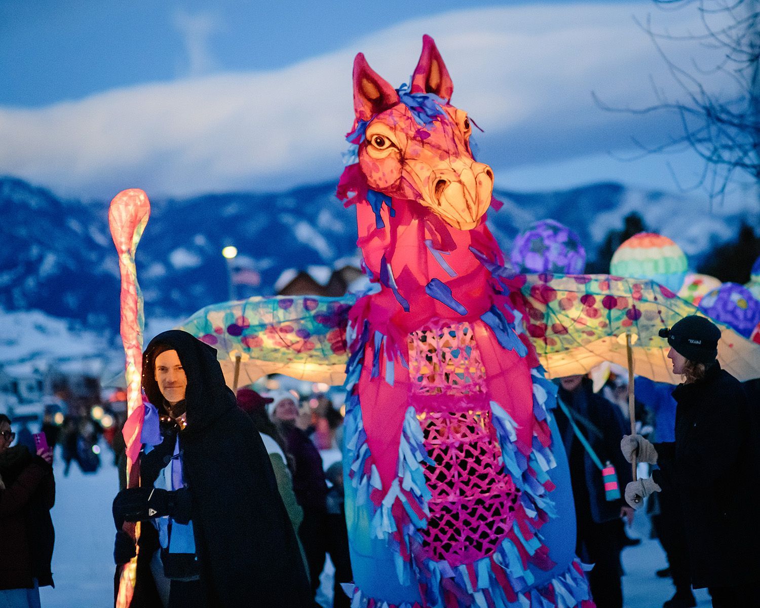 The Menagerie of the Imaginary Lantern Parade illuminated the darkness with joy and light. Magically glowing lanterns created and carried by Gallatin Valley artists and community members were accompanied by singers from our community.
