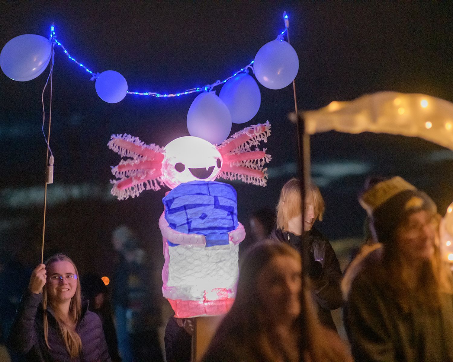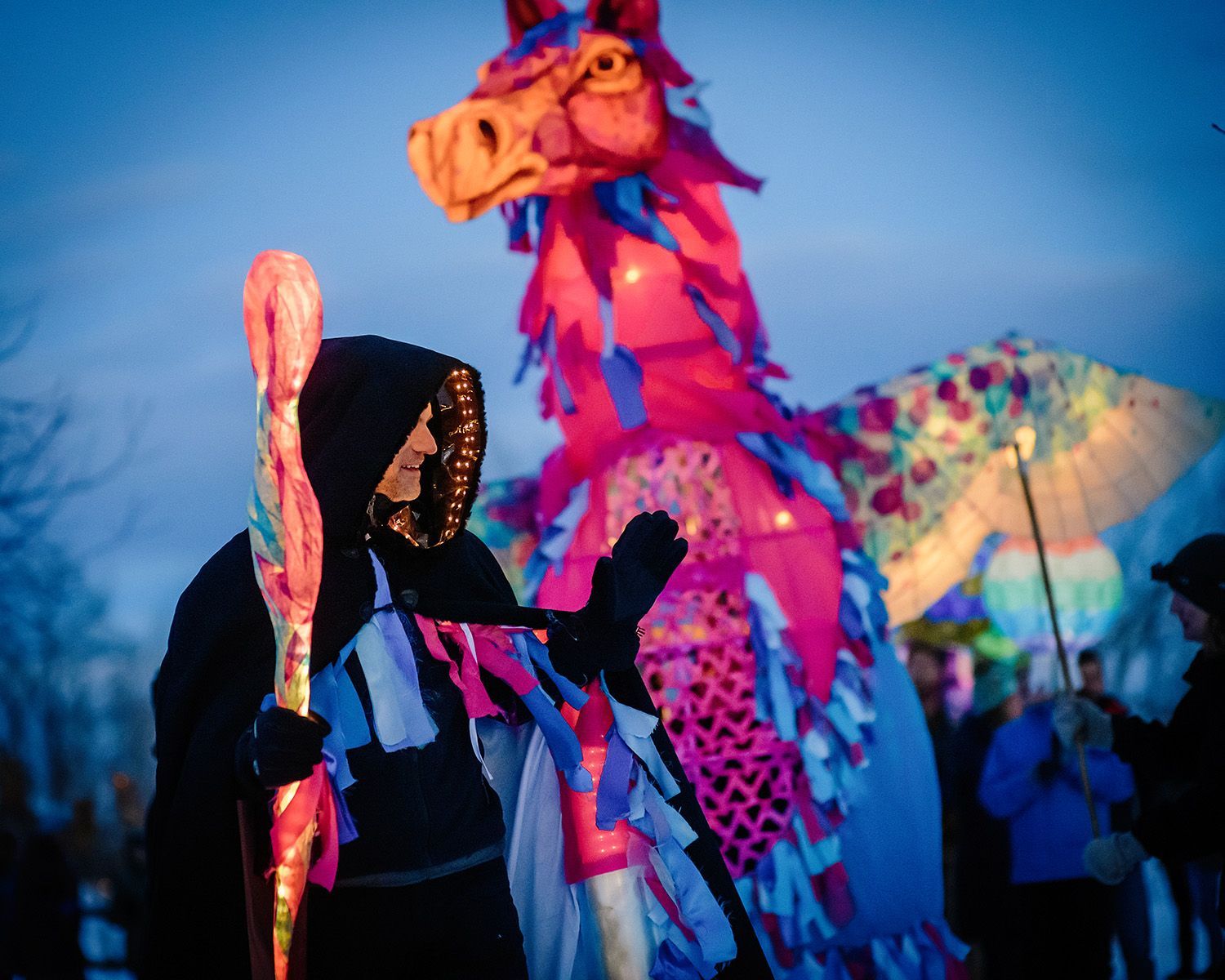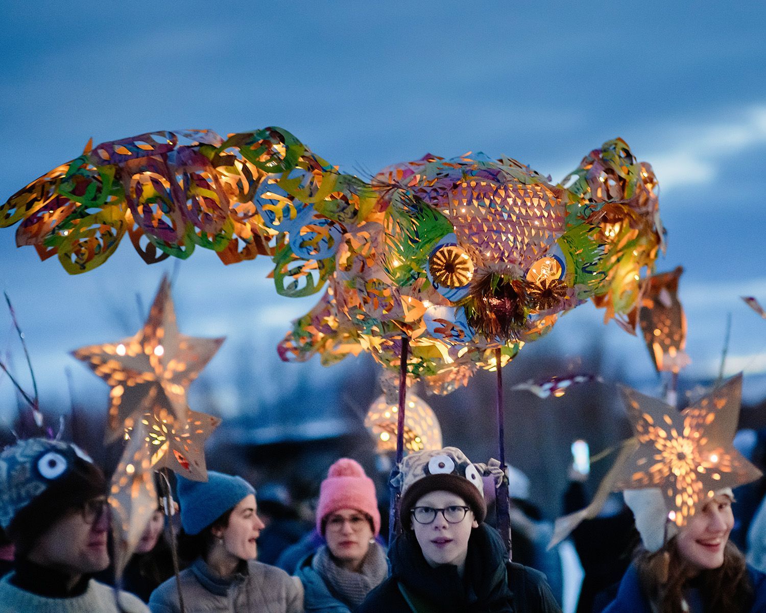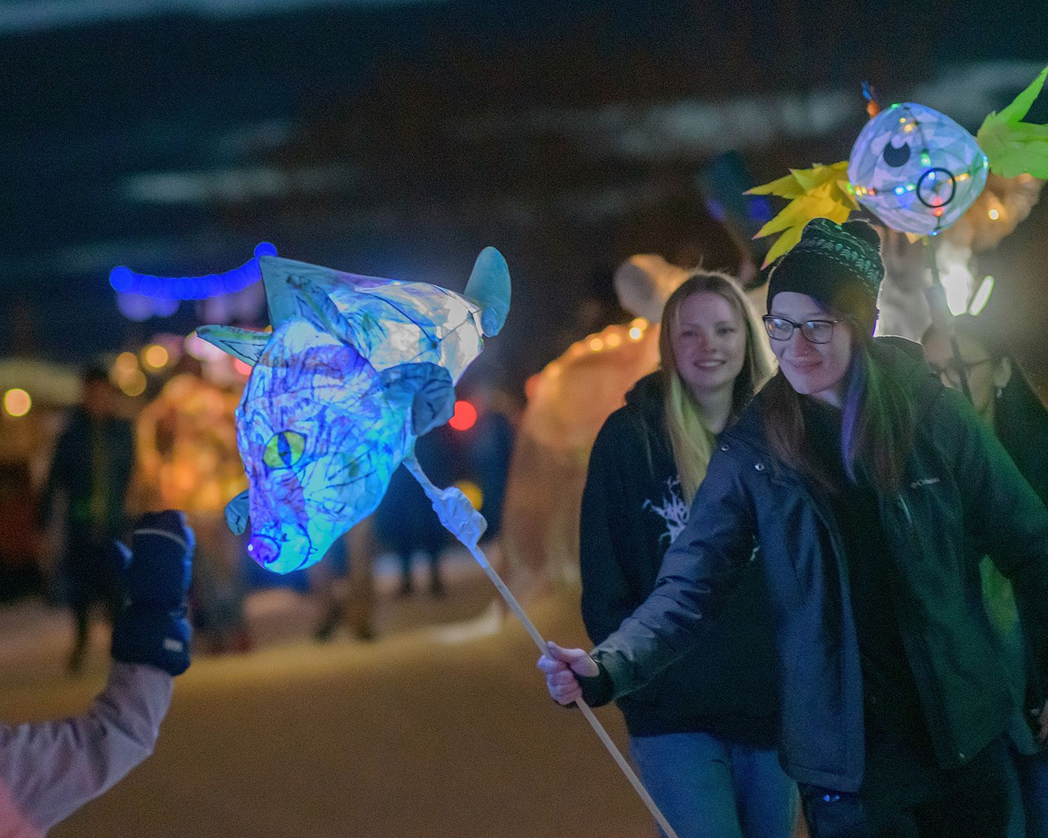 The Menagerie of the Imaginary Lantern Parade illuminated the darkness with joy and light. Magically glowing lanterns created and carried by Gallatin Valley artists and community members were accompanied by singers from our community.