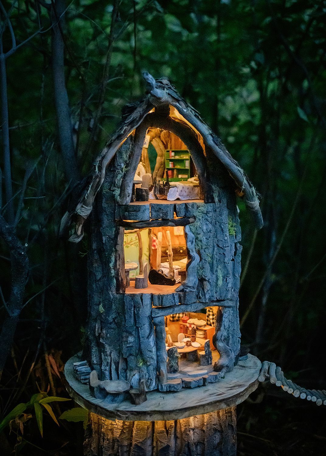 Begonia’s Bed & Breakfast is the place for visiting fairies to rest their wings and enjoy a hot meal. Begonia Bottleby, the kind and gregarious proprietor of B’s B&B, is beloved by all. On the first floor, guests can enjoy Begonia’s famous Hyalite huckleberry pies, scones, and wild mushroom quiches washed down with a cup of Begonia’s signature bergamot tea blend. While not exploring Bumblewood Thicket, guests get comfy in the second-floor bedroom. Begonia’s private quarters are tucked in at the tippy top. The B&B has hosted many a traveling musician visiting to perform at the Timber Tunes Bandstand.