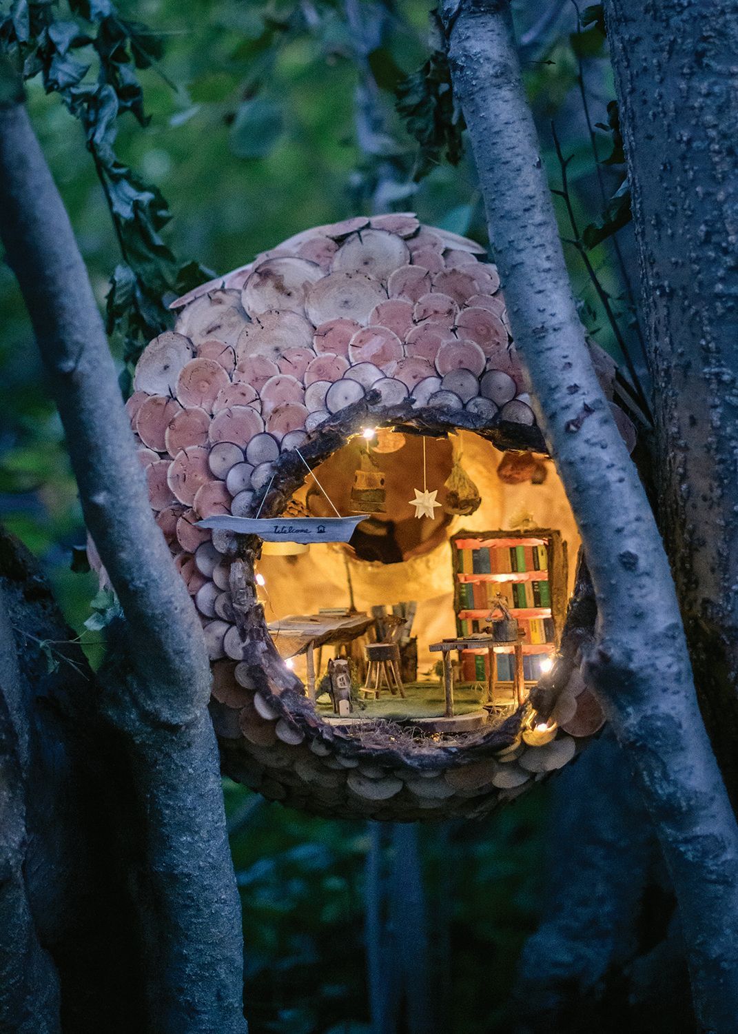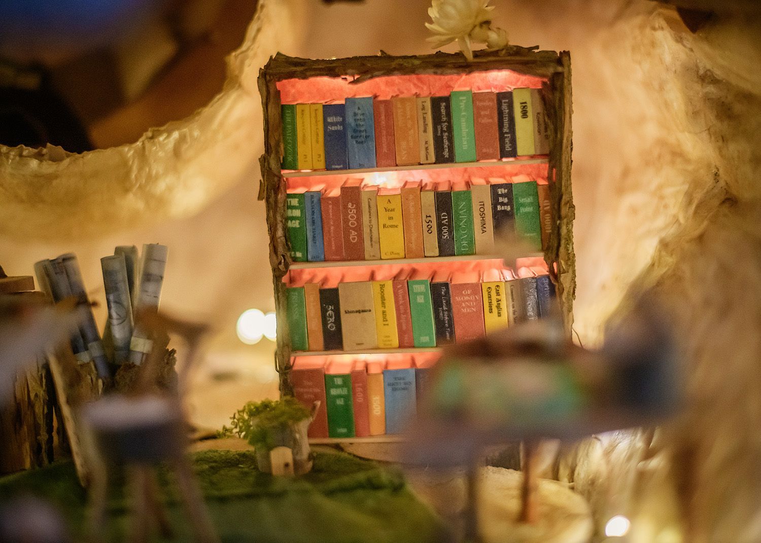 Acclaimed architect Bettina Wong lives and works in this airy little aerie, where she has everything she needs and everything is in its place. Bettina has been designing in the village for a very, very long time. Although trained in the Baumaus tradition, her architectural style is far more eclectic. Using her magical bookshelf as a portal, Bettina travels through time and space. She uses her journeys to research architecture around the world and throughout the ages, bringing back ideas new and old to implement in her swooping edge designs.