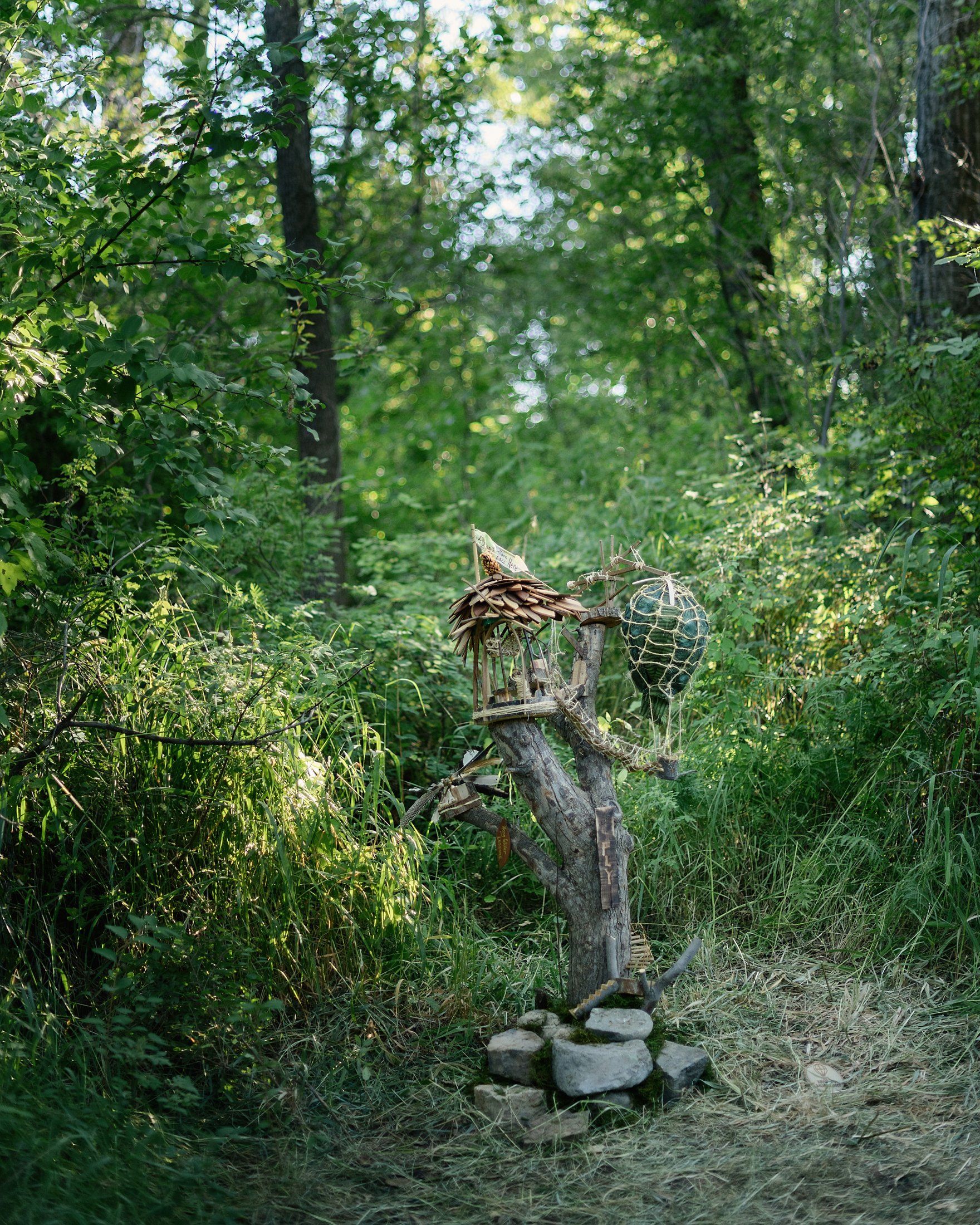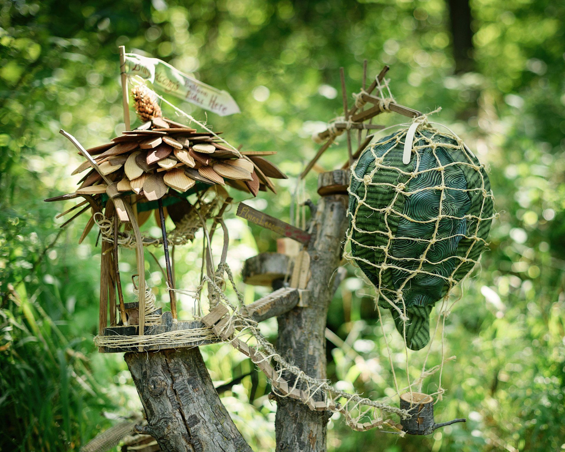 Billie Birdsong believes that the gift of flight should not be limited to fairies, birds and other winged creatures. He shares his love of flying with wingless friends and neighbors by offering hang gliding lessons and balloon rides to mice, voles, and other assorted forest critters (really anyone under the 5oz weight limit) from his airy home in the trees. The balloon tether platform is the starting place for many a magical skyward adventure and there are multiple jumping off points for hang gliders of all levels.