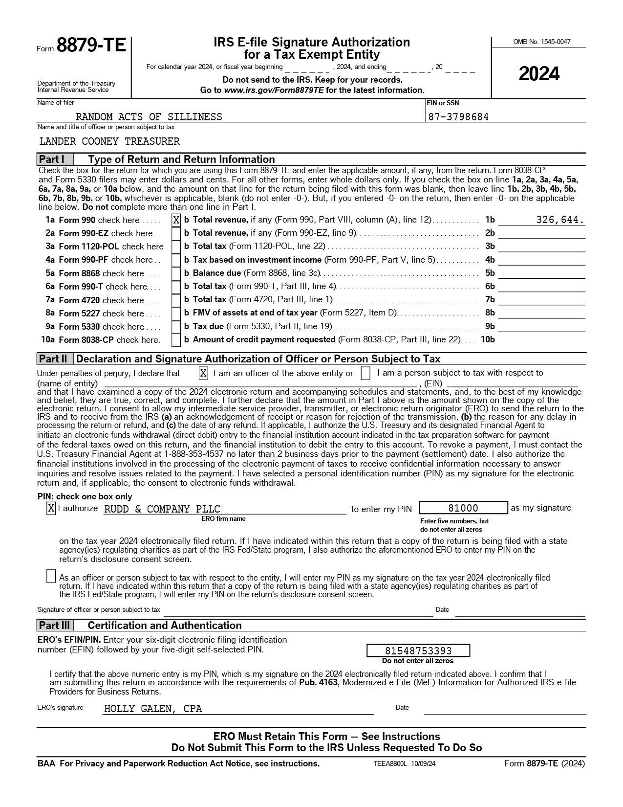 As a nonprofit organization, we believe that our financials should be completely transparent. When you make a gift to Random Acts of Silliness, you are making art accessible to all residents of the Gallatin Valley, and helping to build a flourishing community.