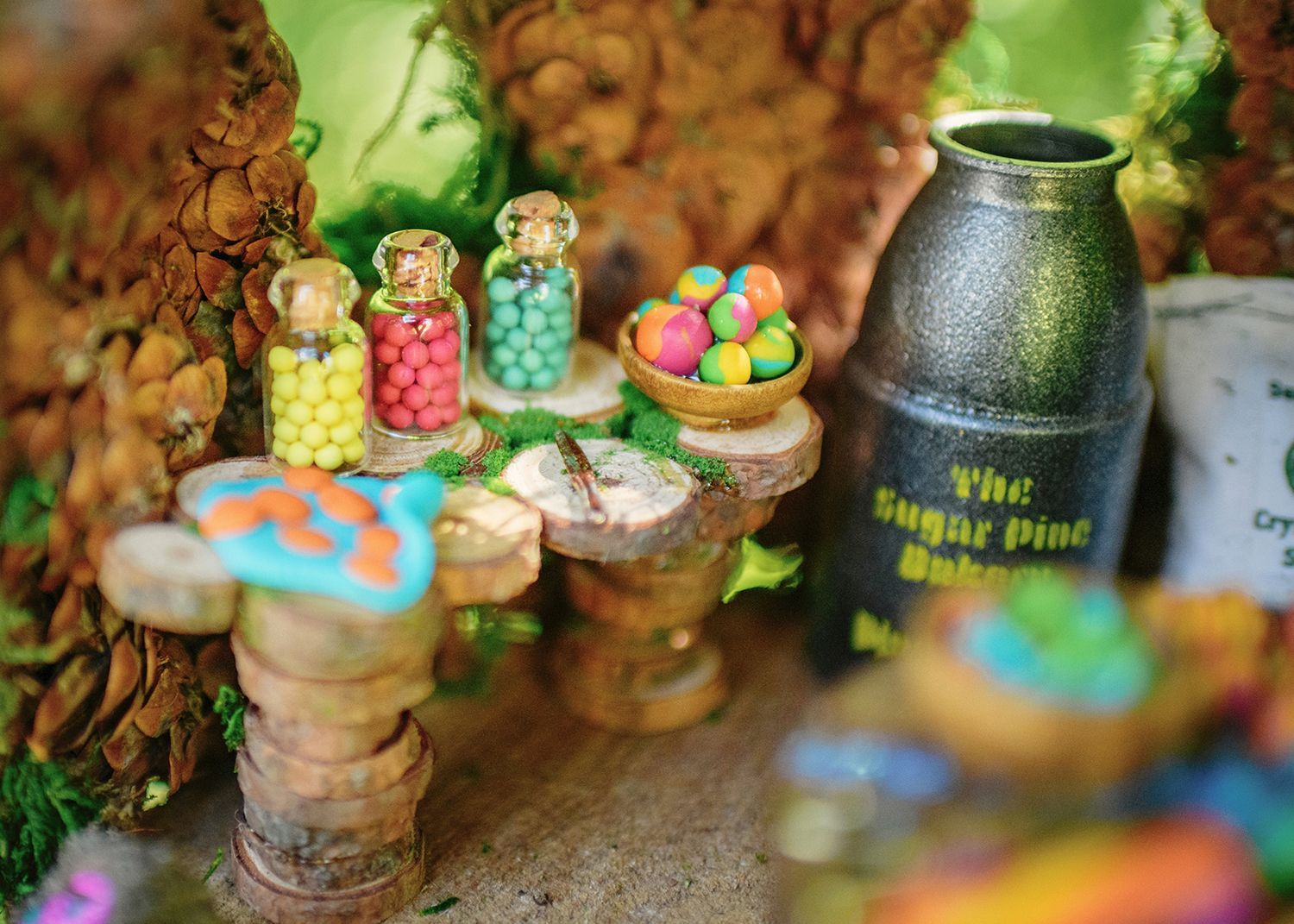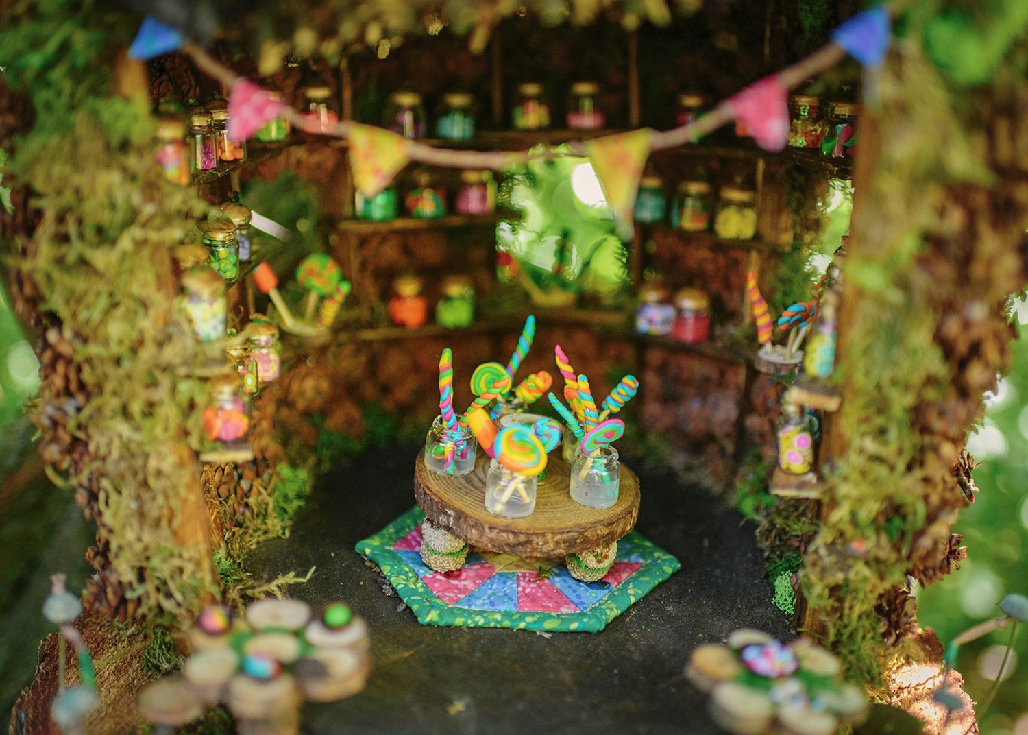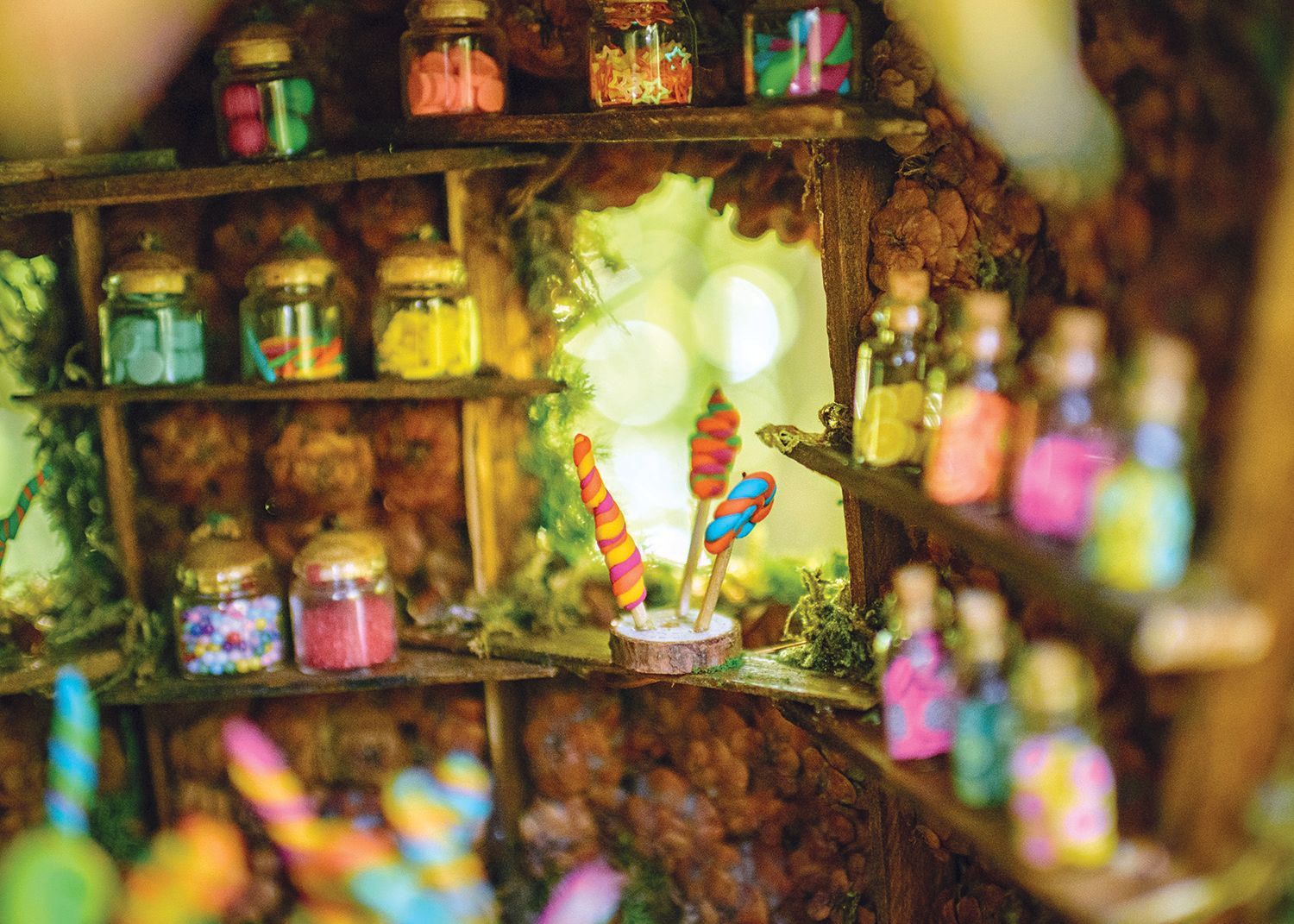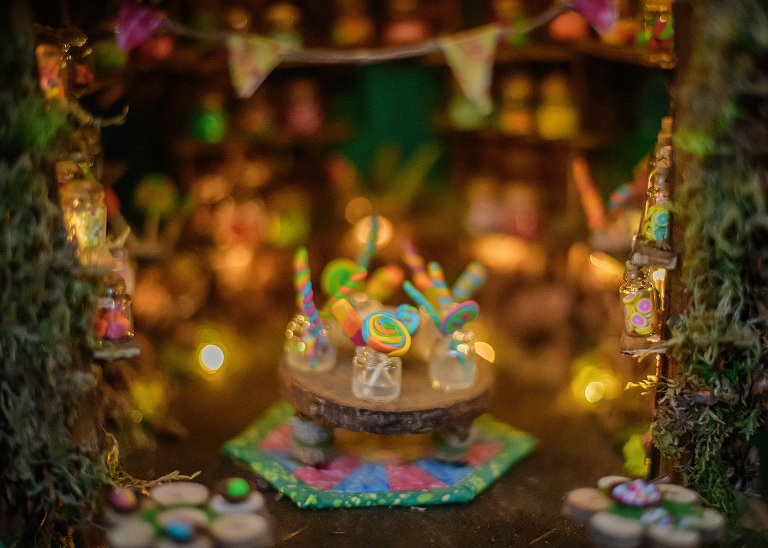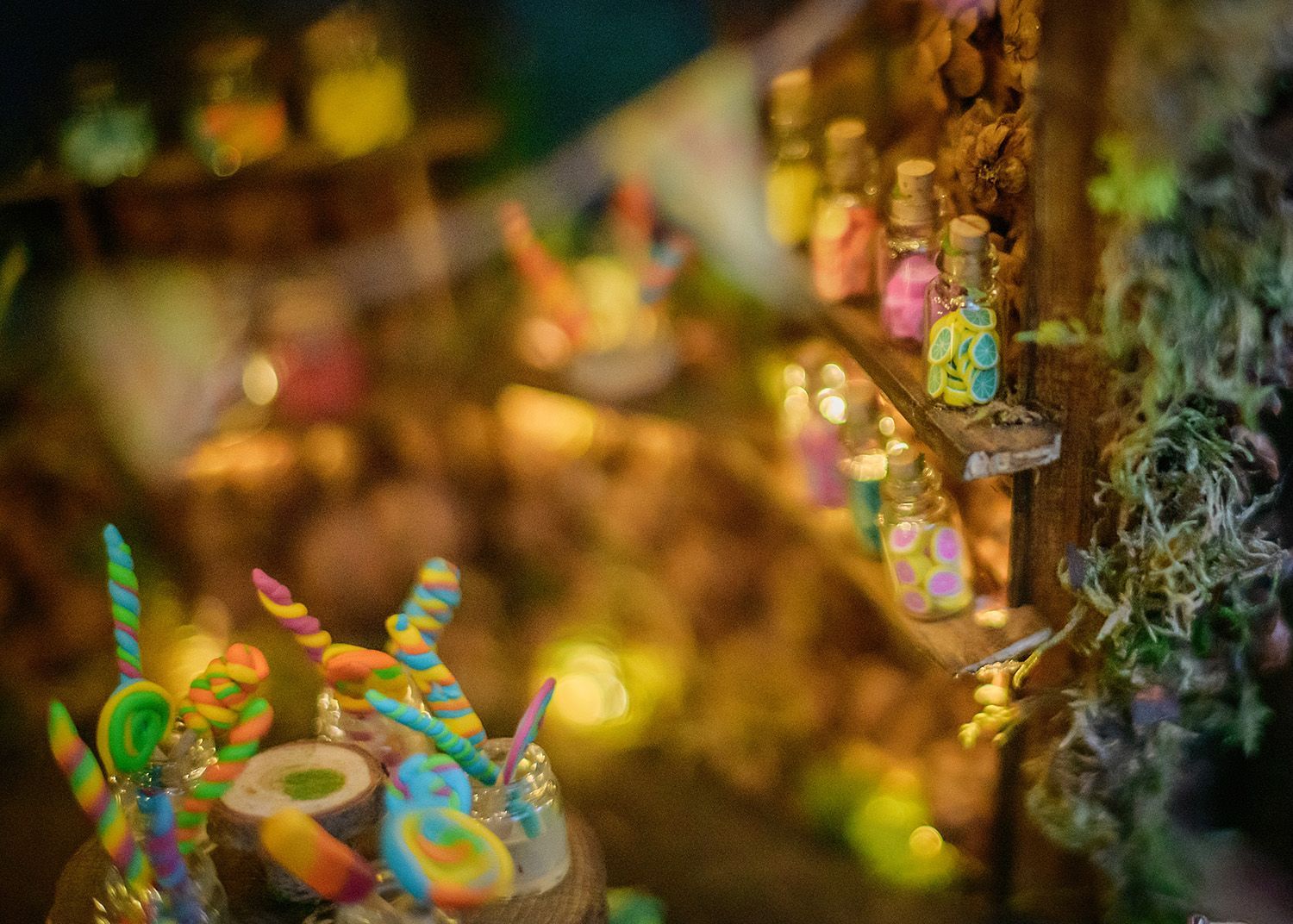 Flossie Fitzwiggle is the proprietress of the Candy Emporium and a brilliant inventor of scrumptious confections. Flossie most enjoys working in her laboratory, coming up with new and delightful treats. Her Flutterscotch DropsFM, Everlasting FrogstoppersFM, and Fluffy SwampmallowsFM are famous in fairy circles. These and more classic confections such as pixie stix and candy wands line the shelves of the emporium. Flossie collaborates closely with dear friends Alymer and Linnaeus Dumplin of the Sugar Pine Bakery, using sugar pine syrup in many of her sweet treats. In turn, the Sugar Piners sell her candies in their Shop Local section.