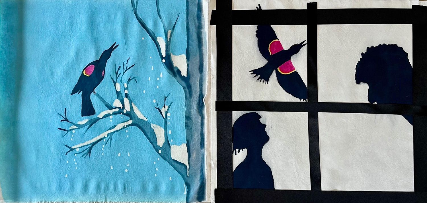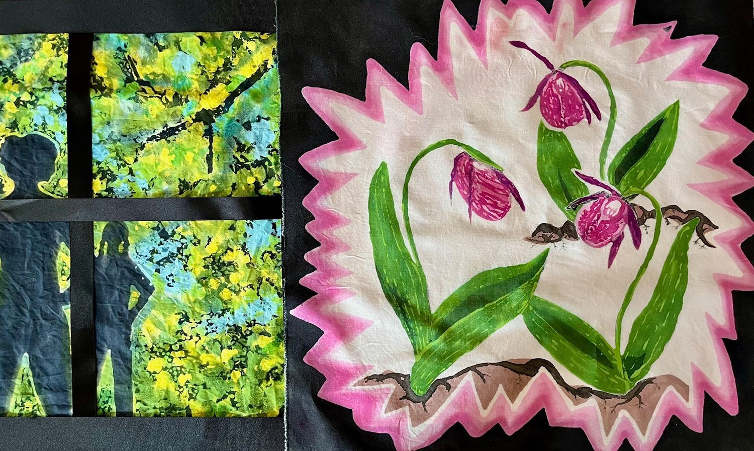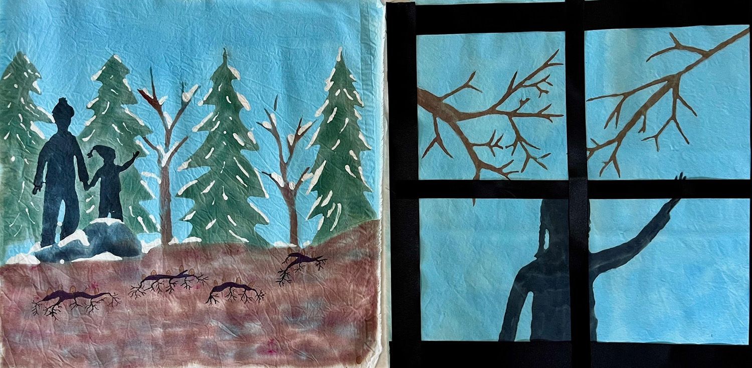 This is Kate’s third year participating in Crankie Fest. Kate works in batik, a complex process using wax and dye on fabric to create striking contrast and vivid colors. Her scroll is made with cotton cloth, wax, dye and tyvek. The inspiration for this crankie came to her when taking a Master Naturalist class last spring, sparking memories of hunting for wildflowers with her own grandmother.