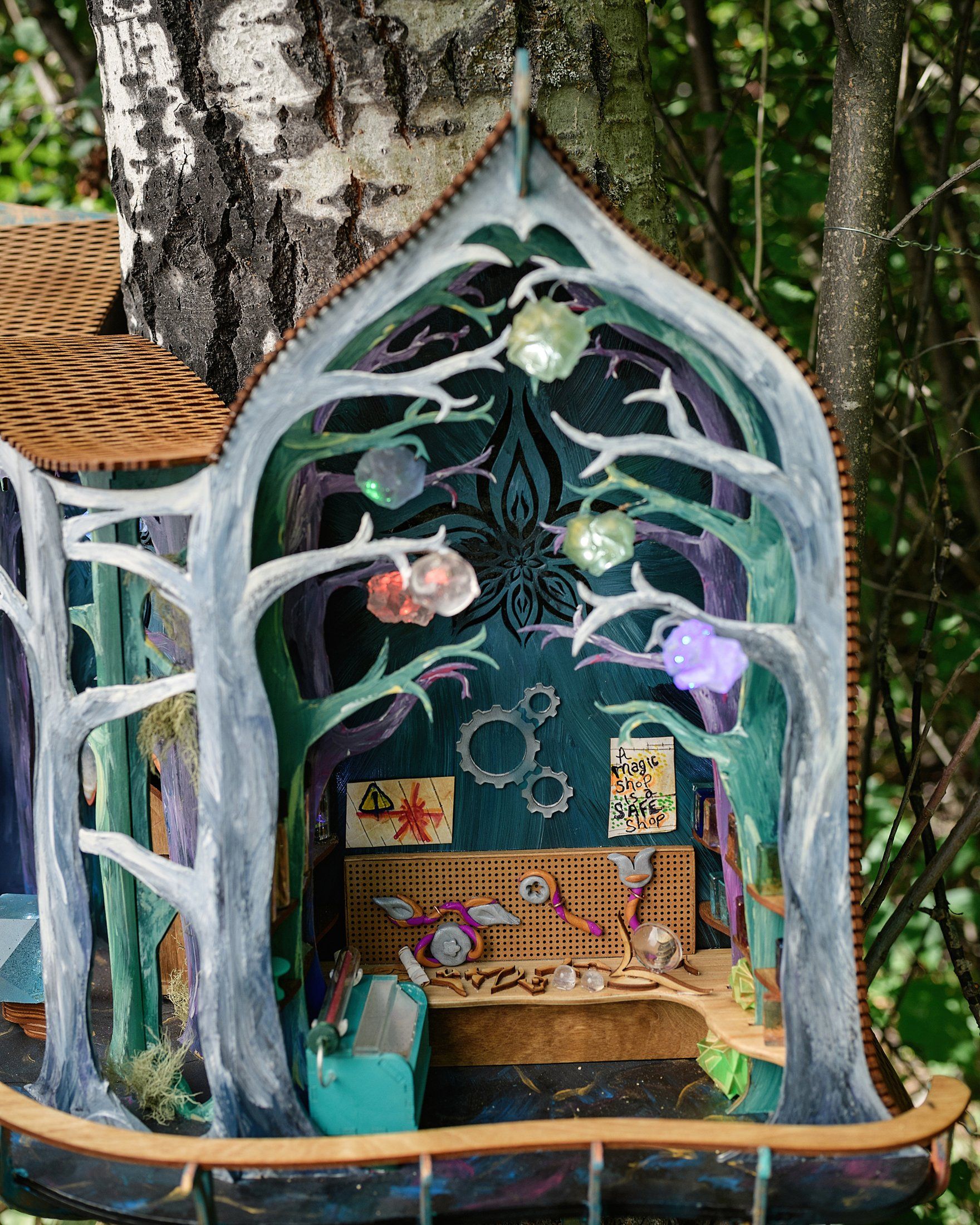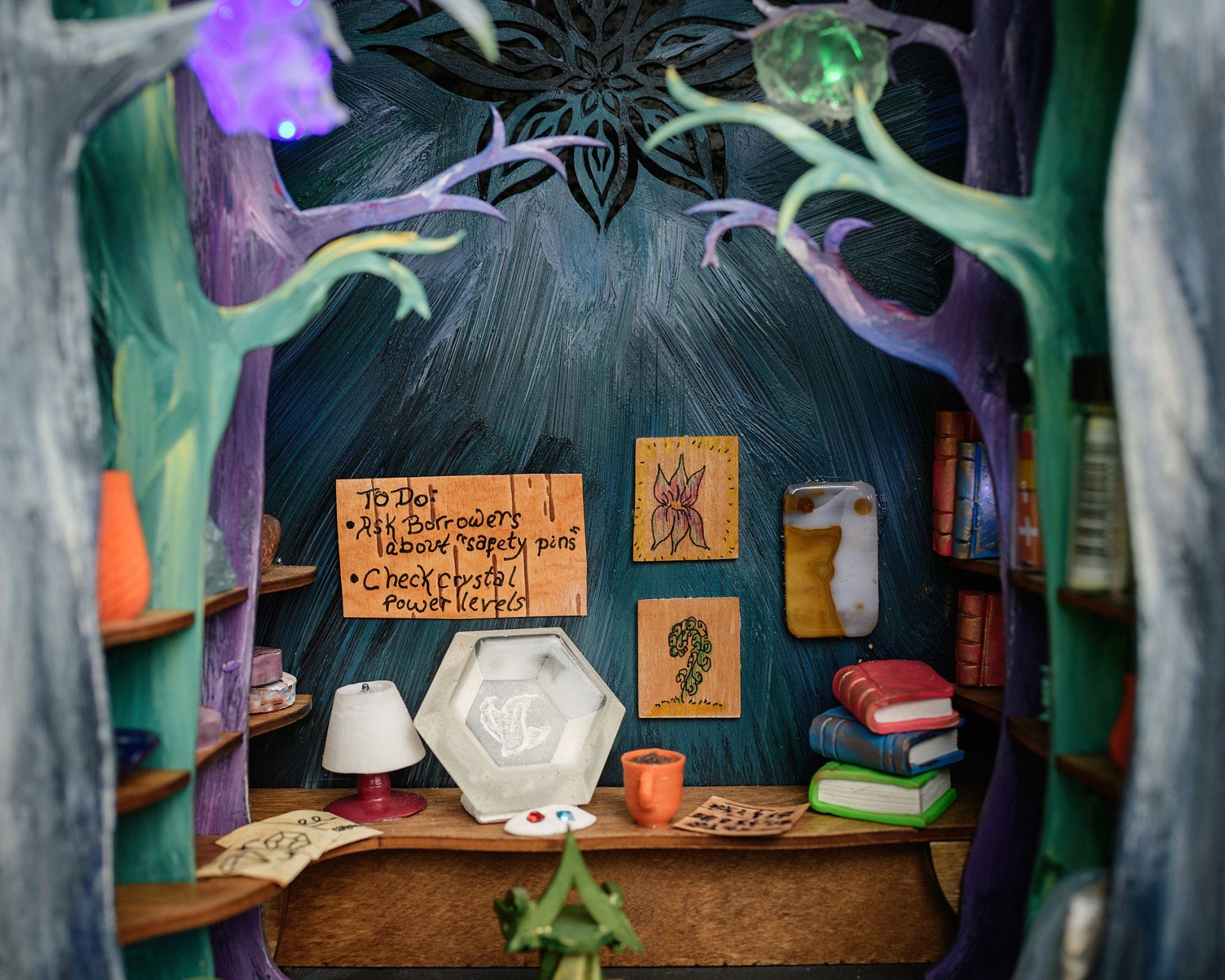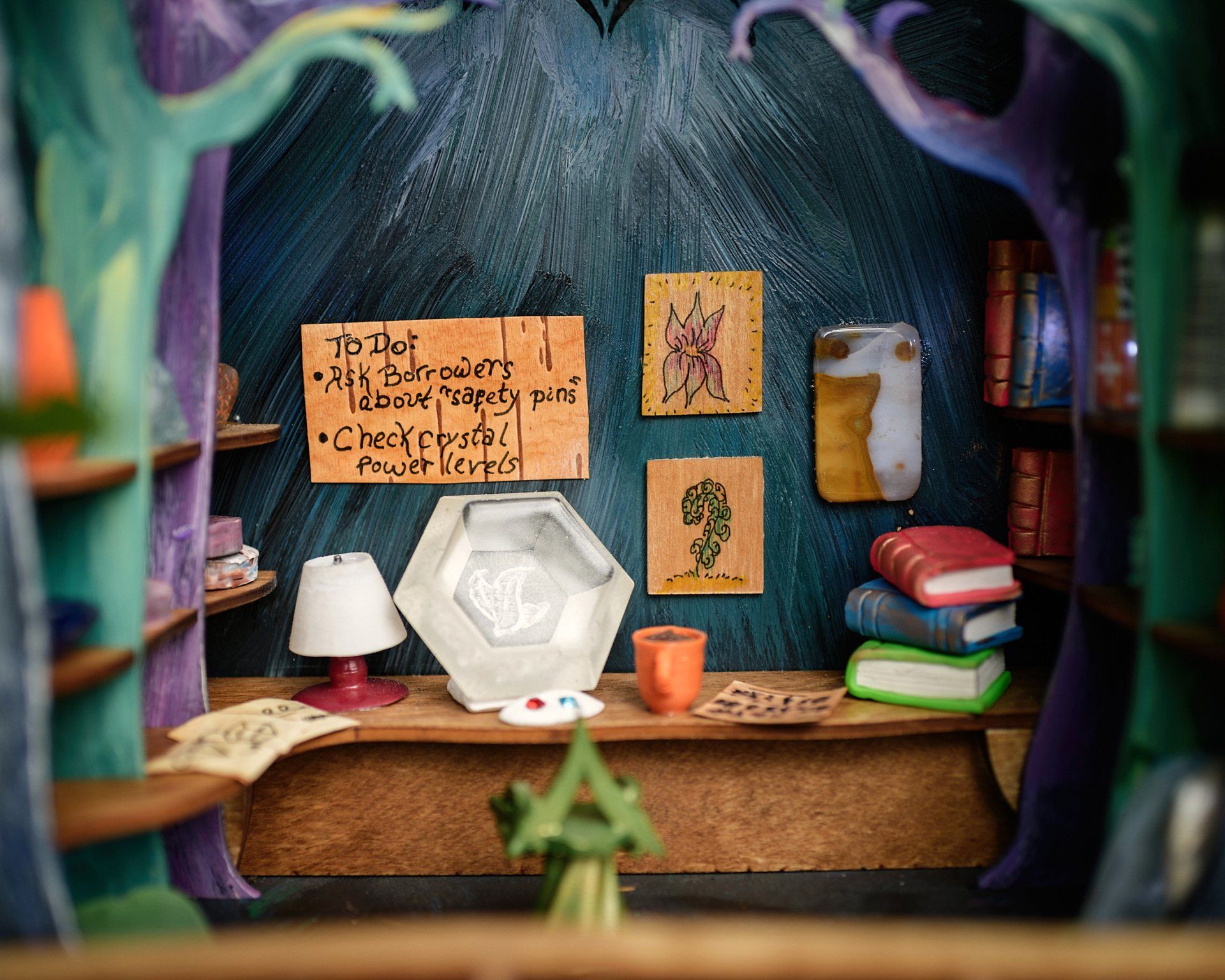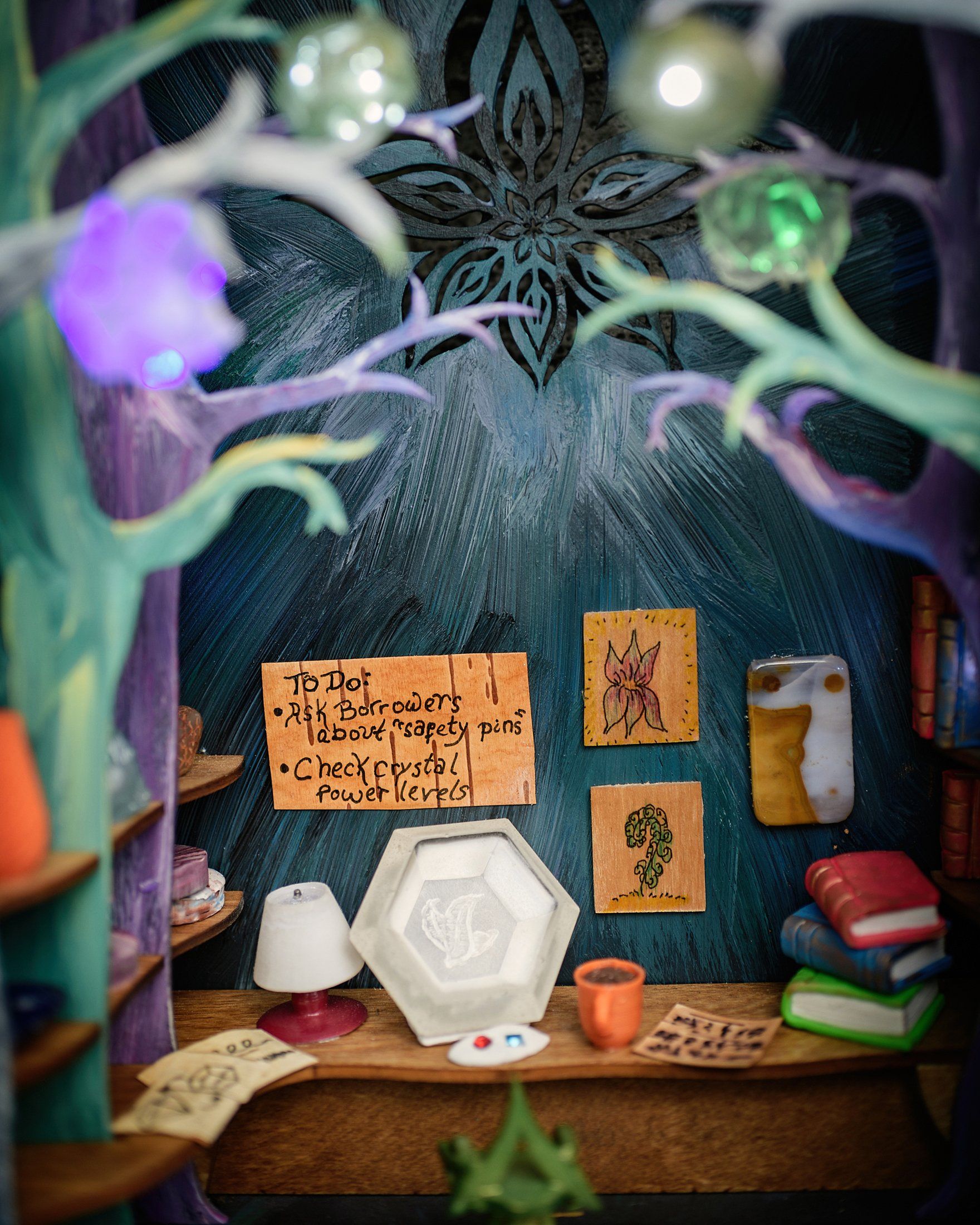 The Hall of Humanology is a research lab, design studio and high-tech workshop. Here fairy designers and engineers (Humanologists) study human objects and create their own inventions inspired by human technology. The hall is owned and operated by the Fairy Council on Adaptation to Human Expansion with support from the Bumblewood Science Center. Some may see this as a controversial field of study, but the Humanologists believe strongly in helping the fairy community adapt to continued human development in the natural areas they inhabit. Humanologists work closely with the Borrowers and with neighbor Anne Corvida to collect and understand human artifacts and behavior.