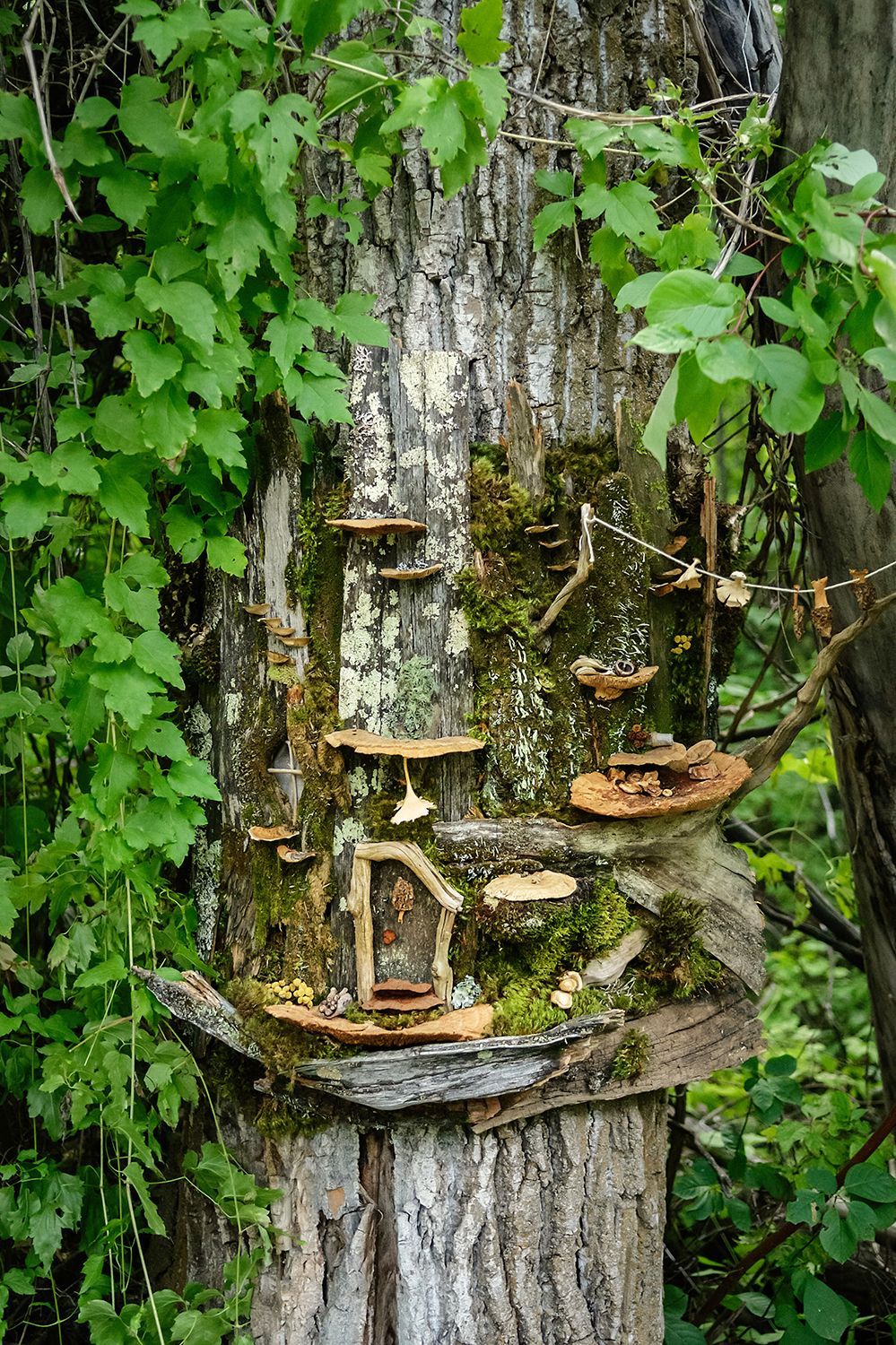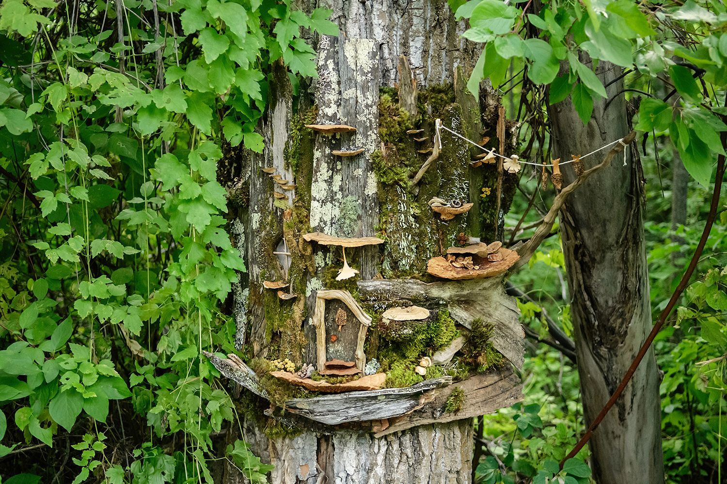 This comfortable home belongs to Chanterelle Button. A master of all things mushroom, she spends much of her time out in the thicket, hunting and harvesting all types of mushrooms. When she finds a new variety, she sketches and writes about it in her journal, and then makes a detailed map so she can remember where she found it. Chanterelle makes sure to harvest responsibly and carefully spreads spores to grow more of her favorite fungi. When not on the hunt for fresh fungus, she can be found at home drying and testing her fungal finds or cooking up a hearty portobello stew.