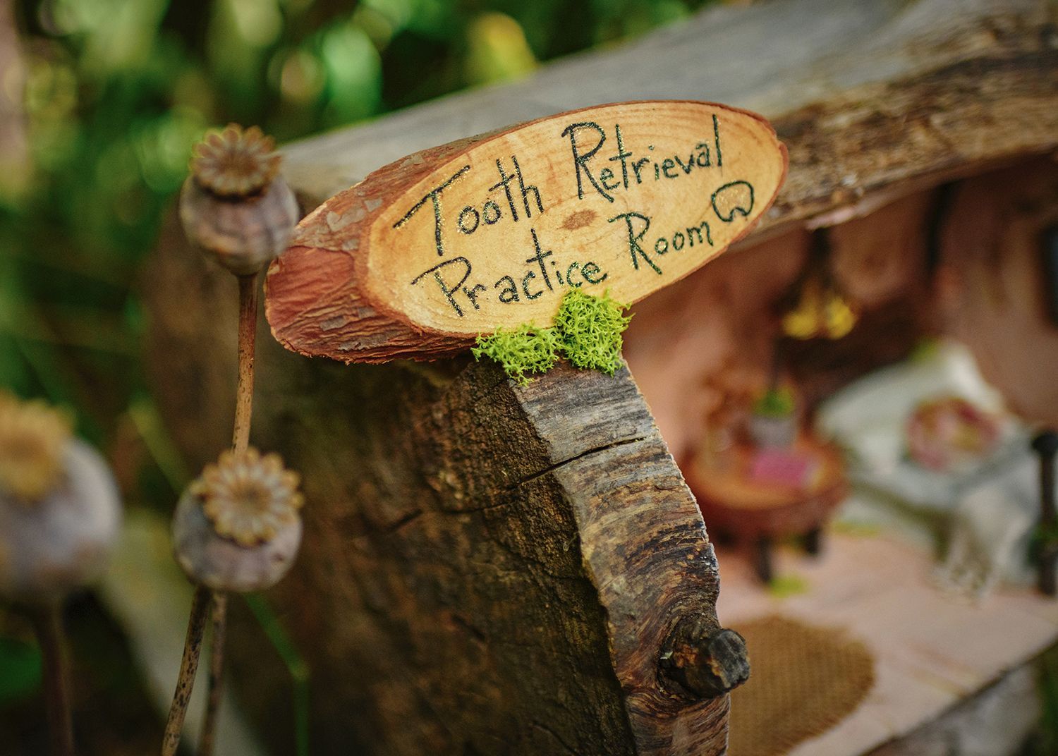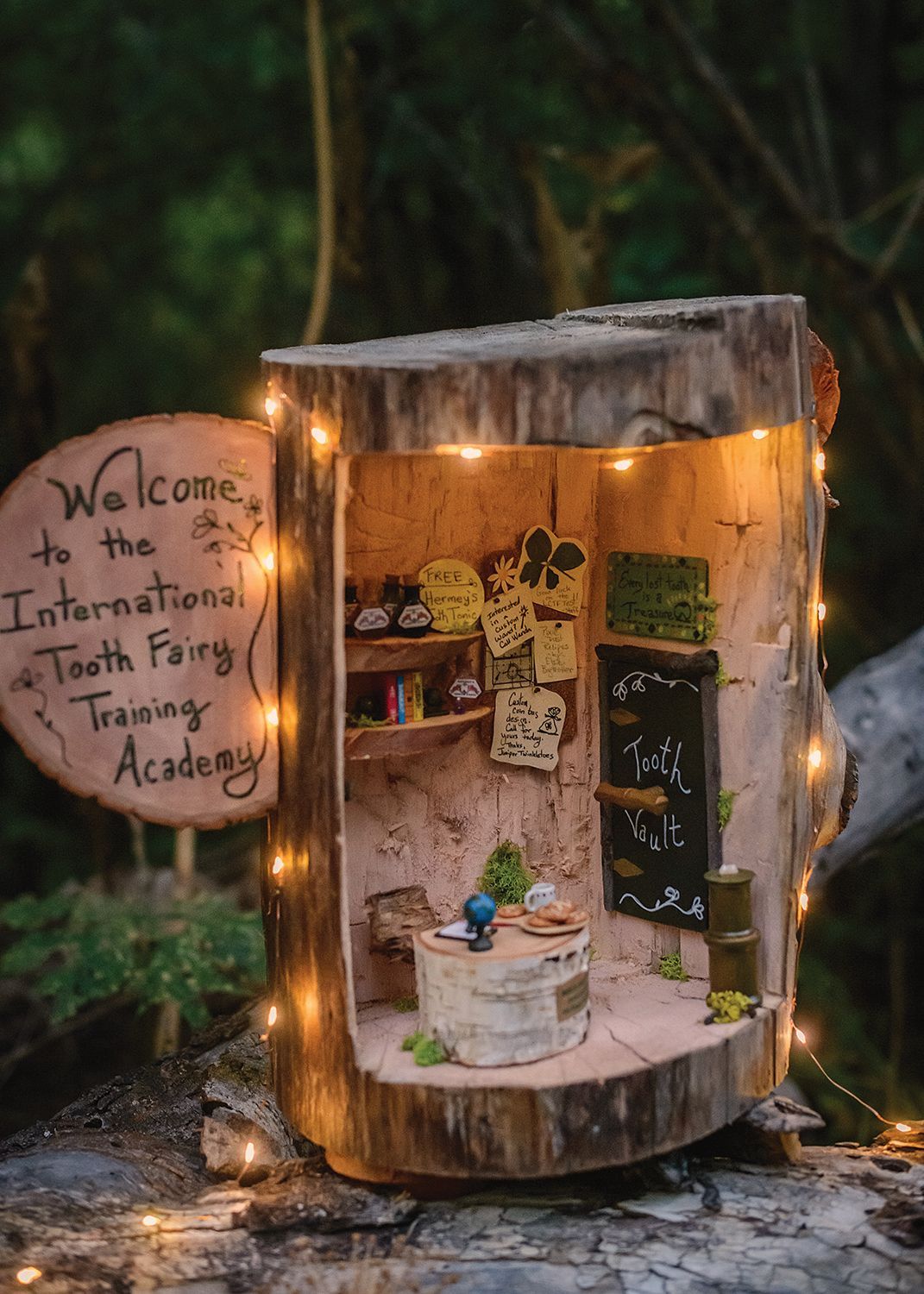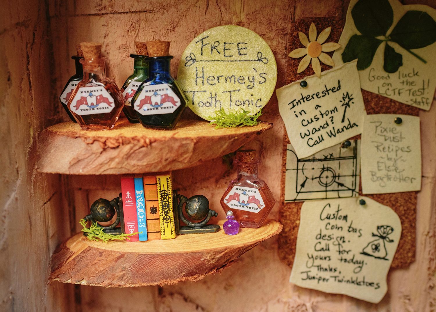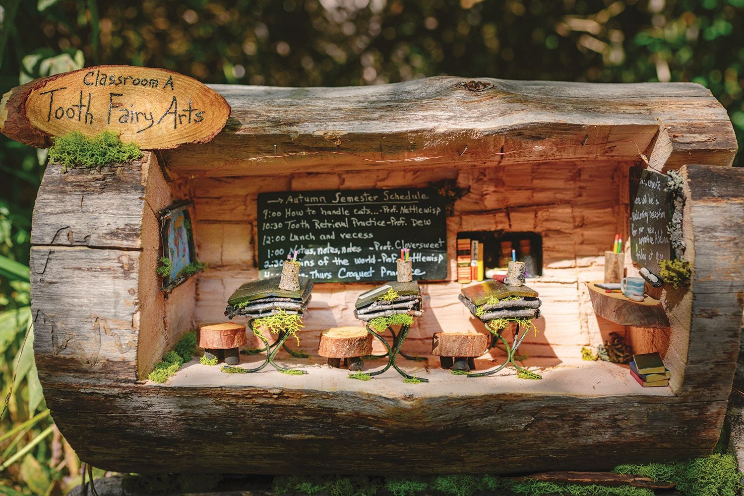 Hold onto your pearly whites! Bumblewood Thicket is proud to be home of the world-renowned International Tooth Fairy Training Academy. Aspiring tooth fairies fly in from all over the globe to study the complex arts of tooth retrieval, transportation, and storage in pursuit of their LCTF–Licensed Clinical Tooth Fairy–degrees. Professors Cloversweet and Nettlewisp offer apprenticeships to young local fairies as an early opportunity to sink their teeth into the training program. Since cavities are the nemesis of every tooth fairy, the practical professors distribute a free tooth tonic to all members of the community so they may indulge their sweet tooths without fear.