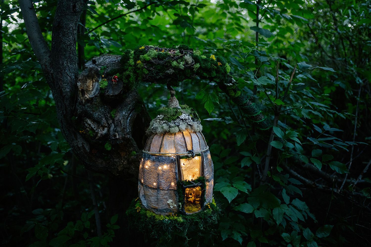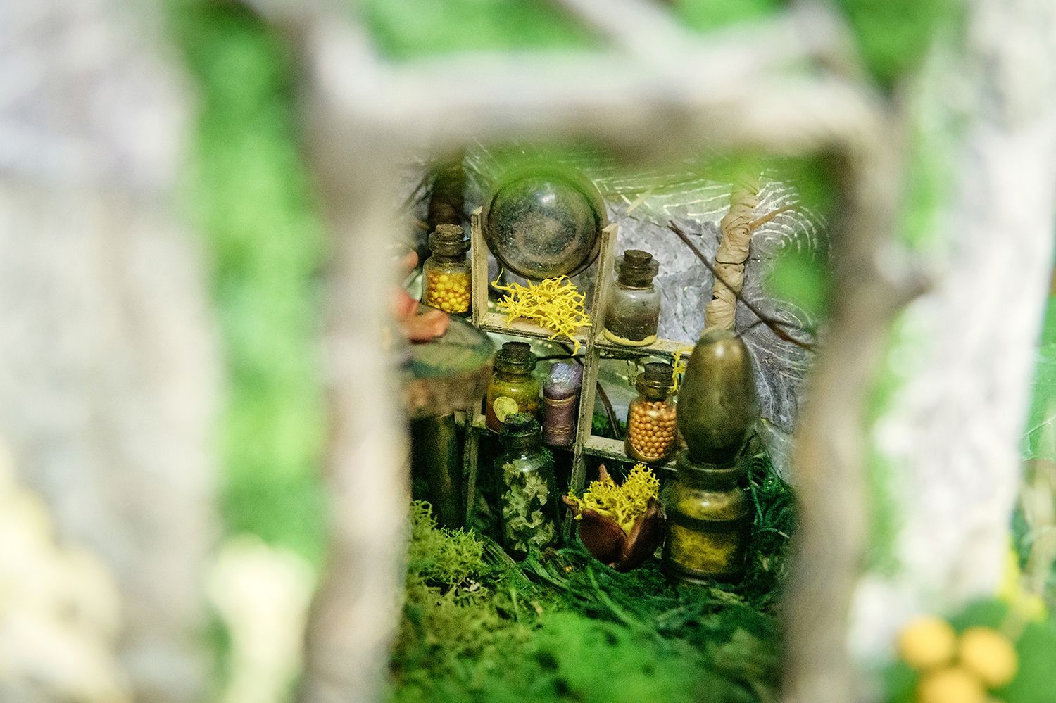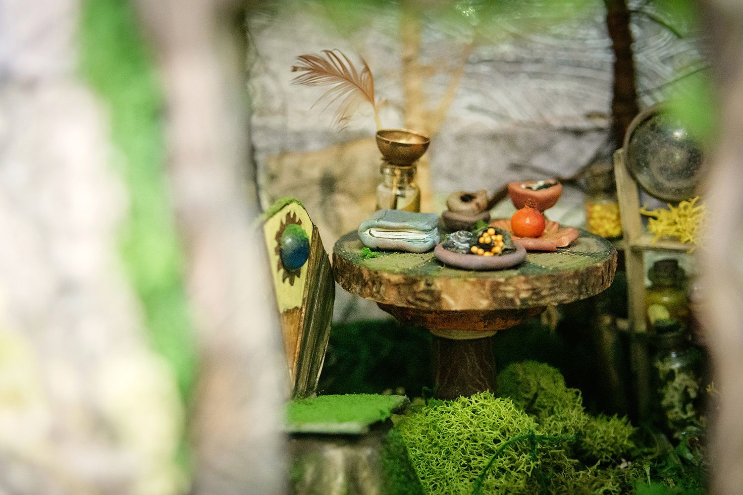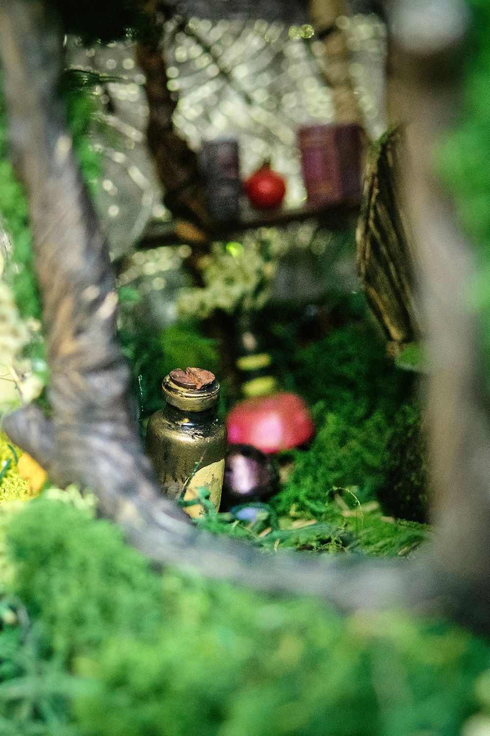 Michelle has lived in Bozeman for ten years and now shares her home with a black Kitten named Synder (pronounced Cinder). Professionally, she is an artist, graphic designer, and animator. She also runs a public drawing club called Drink & Draw Bozeman. As a child, she always loved making little homes and furniture out of mud, rocks, and leaves for her small toy animals and real insects. This is her second fairy home in Bumblewood Thicket. You can find Michelle on her website and on instagram.