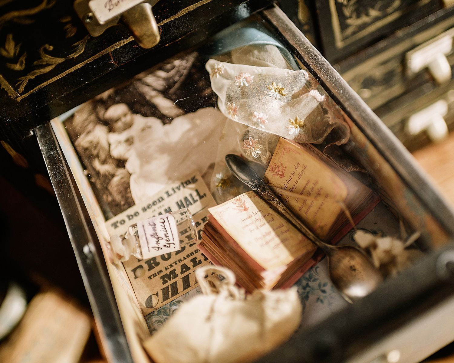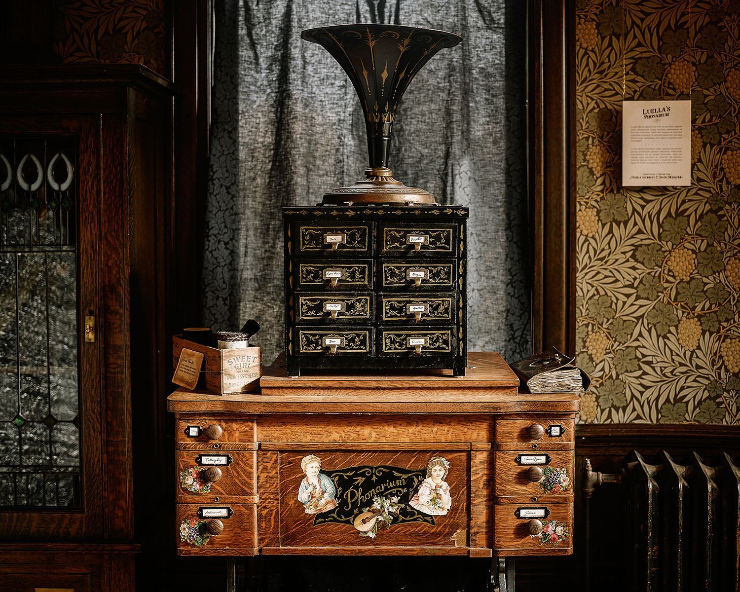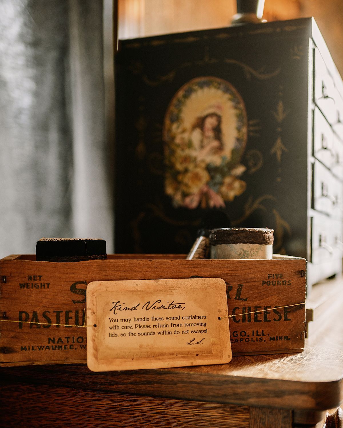Luella Sibylla was born with a striking ability to hear and mimic sounds. At the age of three years, she devised a system of sonic notation to document the sounds she found amusing. Later, she discovered a way to precisely capture sonic phenomena using intricate instruments of her own invention. Luella painstakingly labeled most of her specimens, but the source of some remains obscure, as do the methods she invented to capture them. She even appears to have collected voices rarely heard in modern times, like those of giants, fairies, and talking beasts. Her unique methods of sonic capture also made it possible for her to preserve the sounds of things like trees and moonlight, which you might have thought were silent.