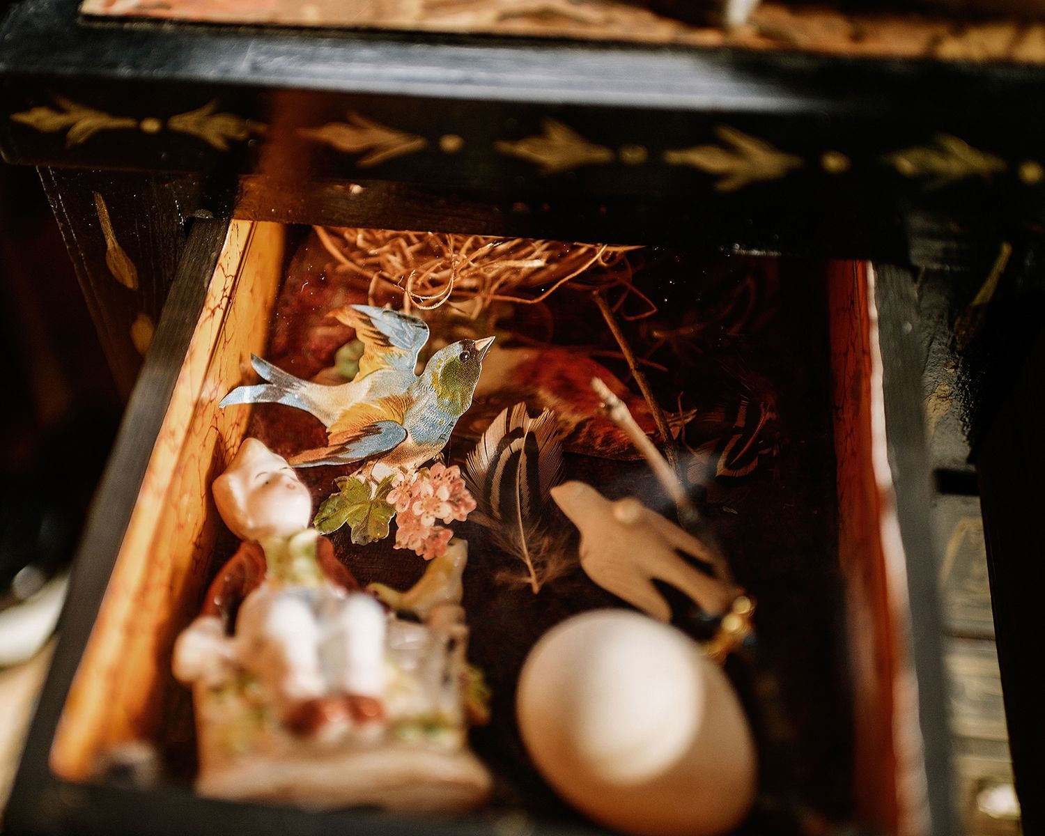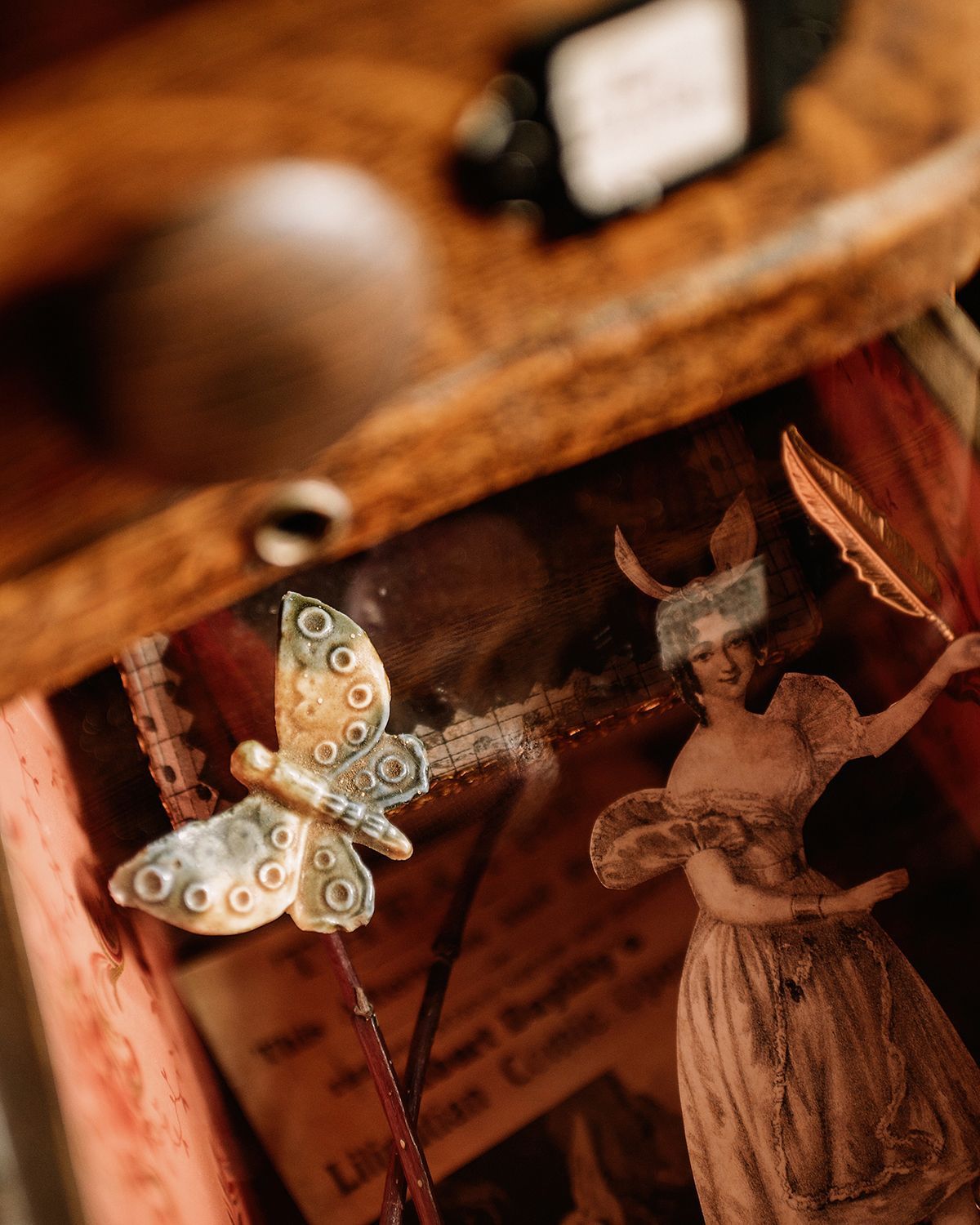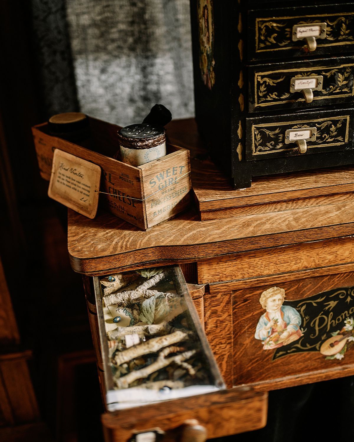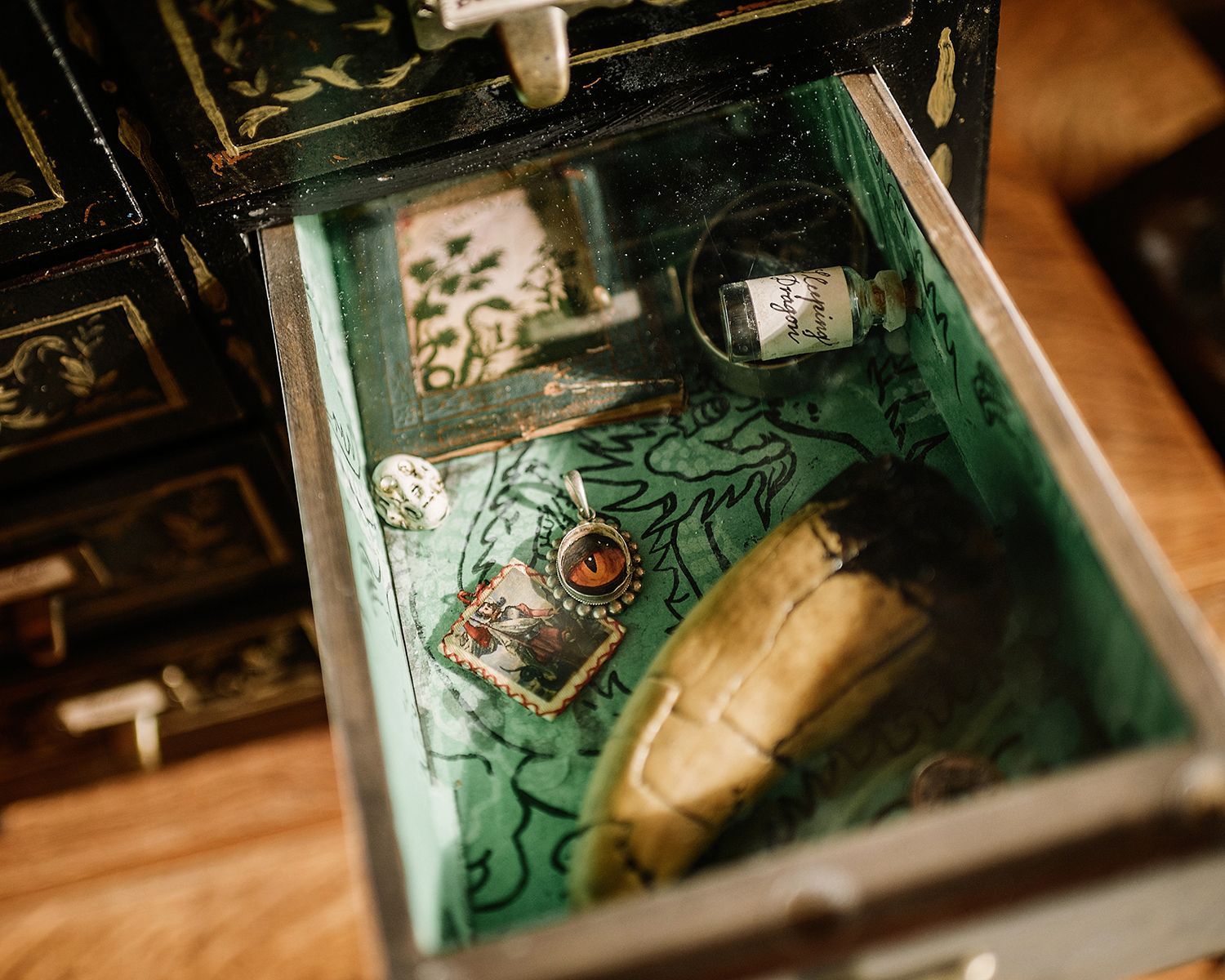 Luella Sibylla was born with a striking ability to hear and mimic sounds. At the age of three years, she devised a system of sonic notation to document the sounds she found amusing. Later, she discovered a way to precisely capture sonic phenomena using intricate instruments of her own invention. Luella painstakingly labeled most of her specimens, but the source of some remains obscure, as do the methods she invented to capture them. She even appears to have collected voices rarely heard in modern times, like those of giants, fairies, and talking beasts. Her unique methods of sonic capture also made it possible for her to preserve the sounds of things like trees and moonlight, which you might have thought were silent.