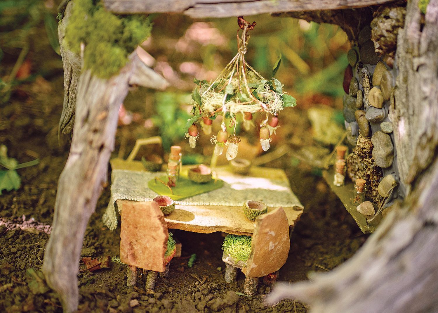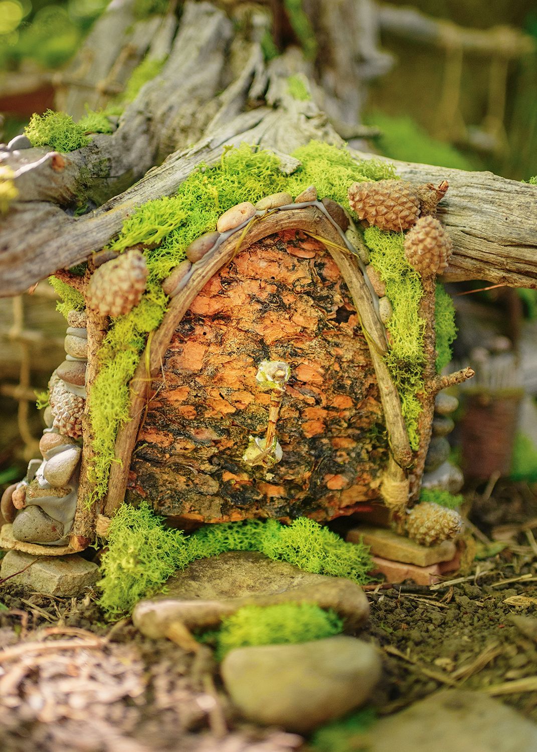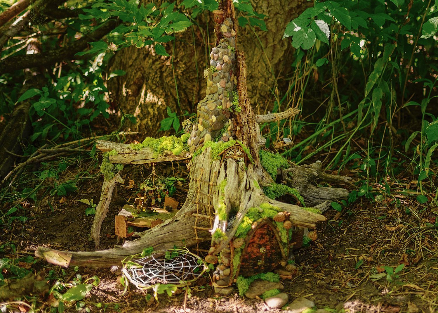 As you may have guessed from their name, the Mason family are all skilled stoneworkers. Shale and Ruby, with the help of young Flint and Mica, crafted the river pebble chimney and walls of their cozy home. Shale’s superb craftsfaeship can be admired in many other stone structures throughout the village. When not stacking stones, the family enjoys fishing for minnows in the nearby river. Ruby loves entertaining guests over cups of thimbleberry wine in the outdoor kitchen, where the chandelier sparkles late into the evening. The boys love reading and are constantly flying off for new books from the Little Fae Library next door.