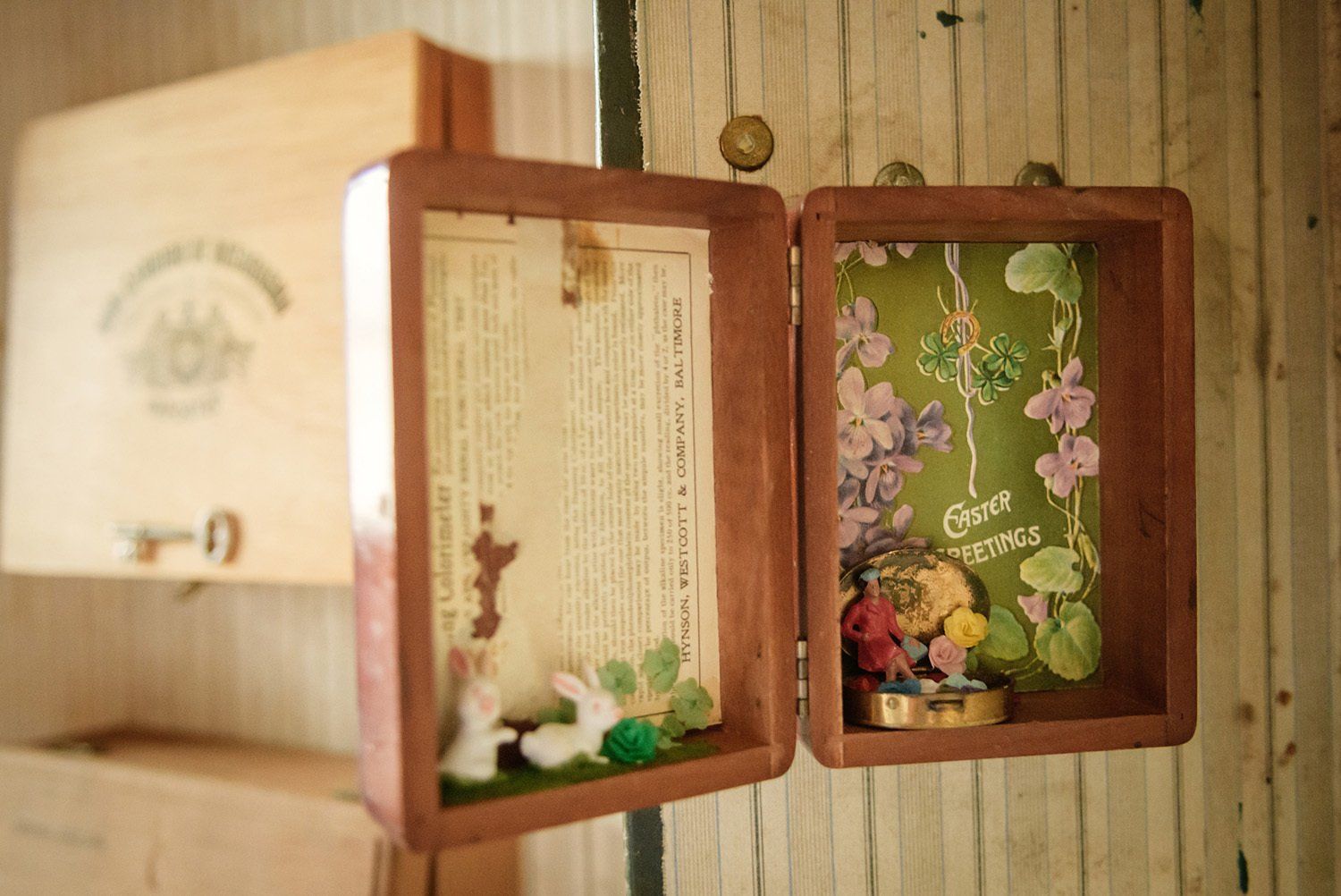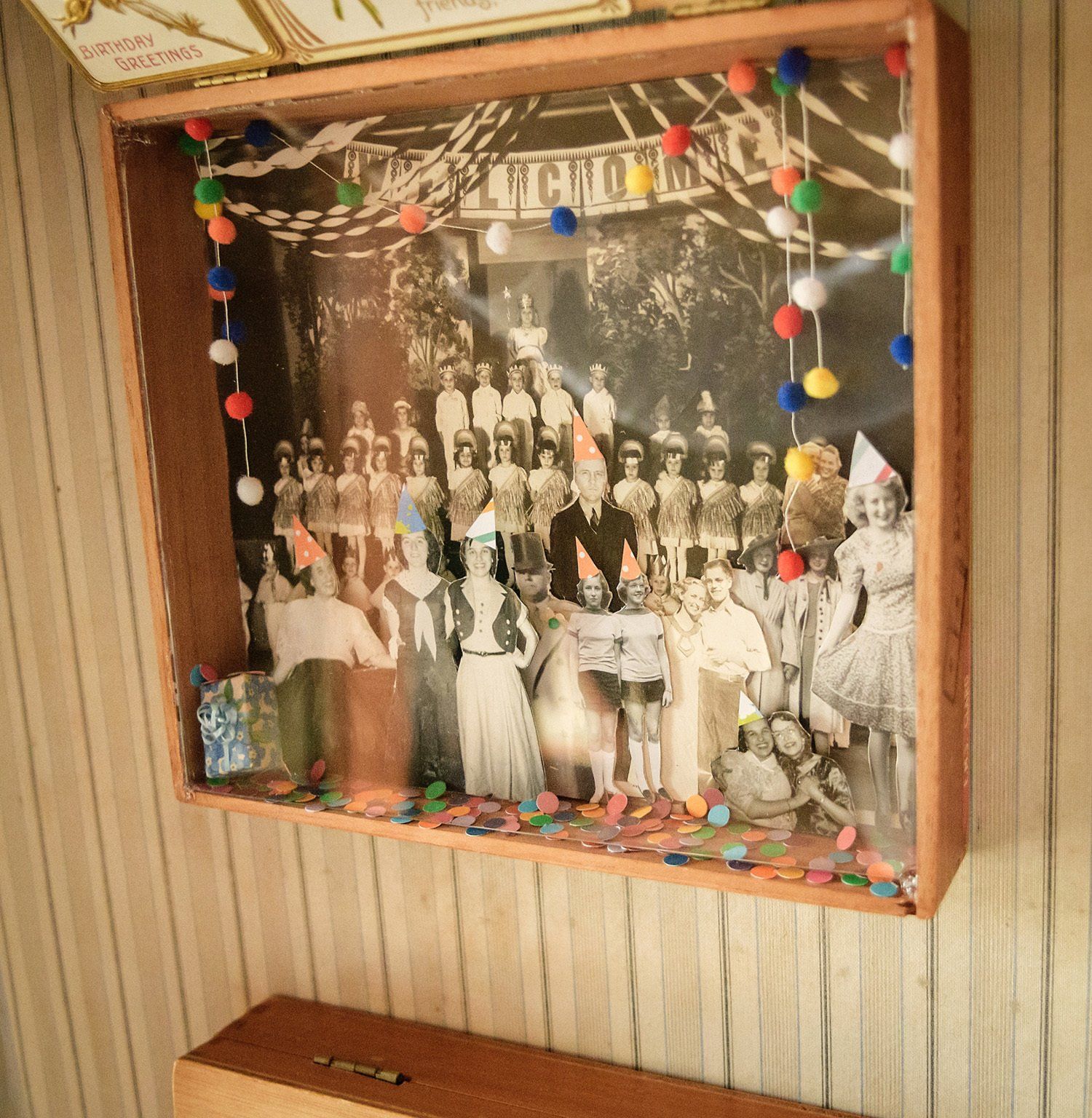 Mimi never wanted the party to end. She longed to capture and preserve the fun and excitement of big gatherings and celebrations, but also treasured the small, unexpected delights of everyday life. She built her collection from hundreds of keepsakes and trinkets and (by some mysterious process) was also able to infuse her collection with the very essence of her happy memories.