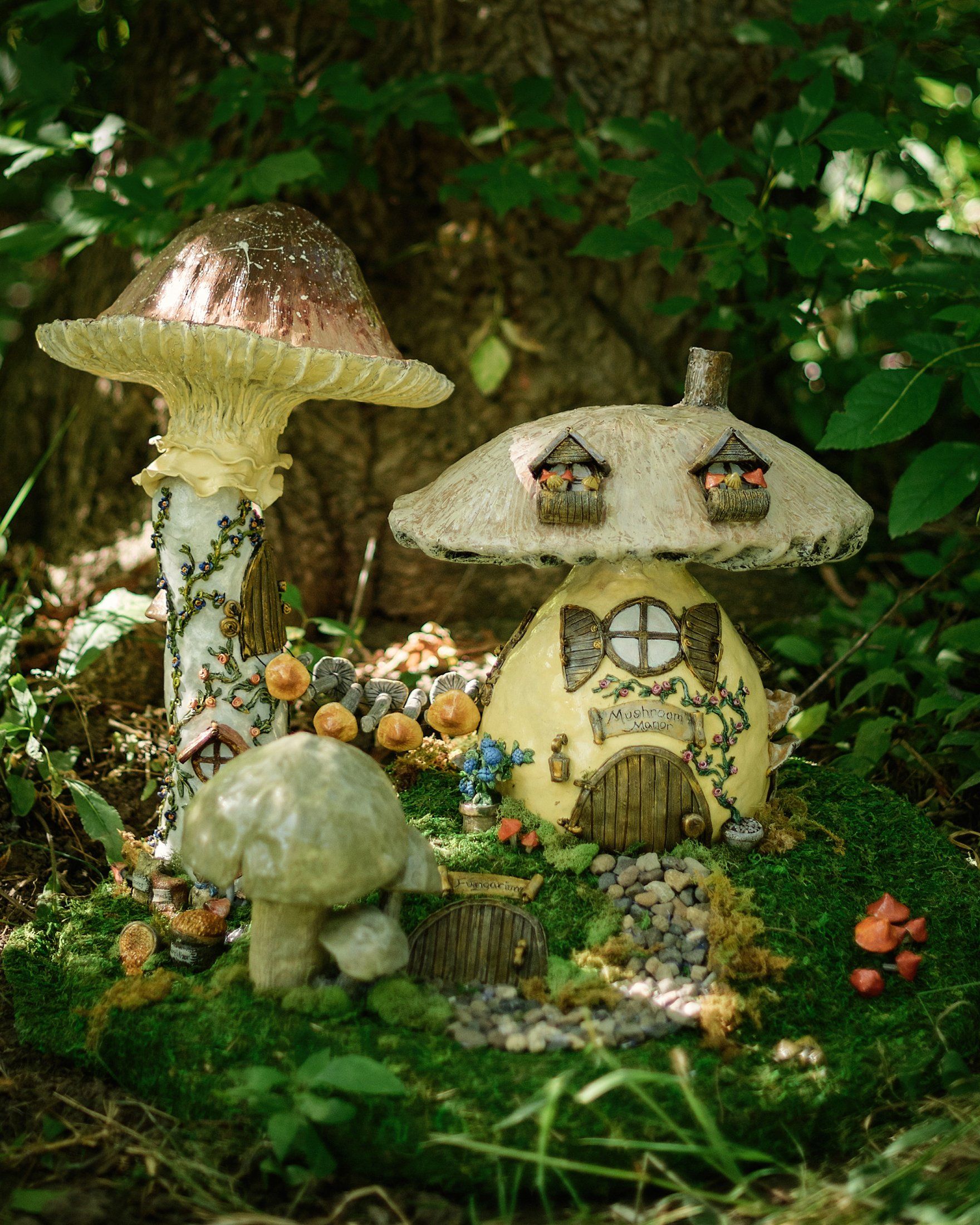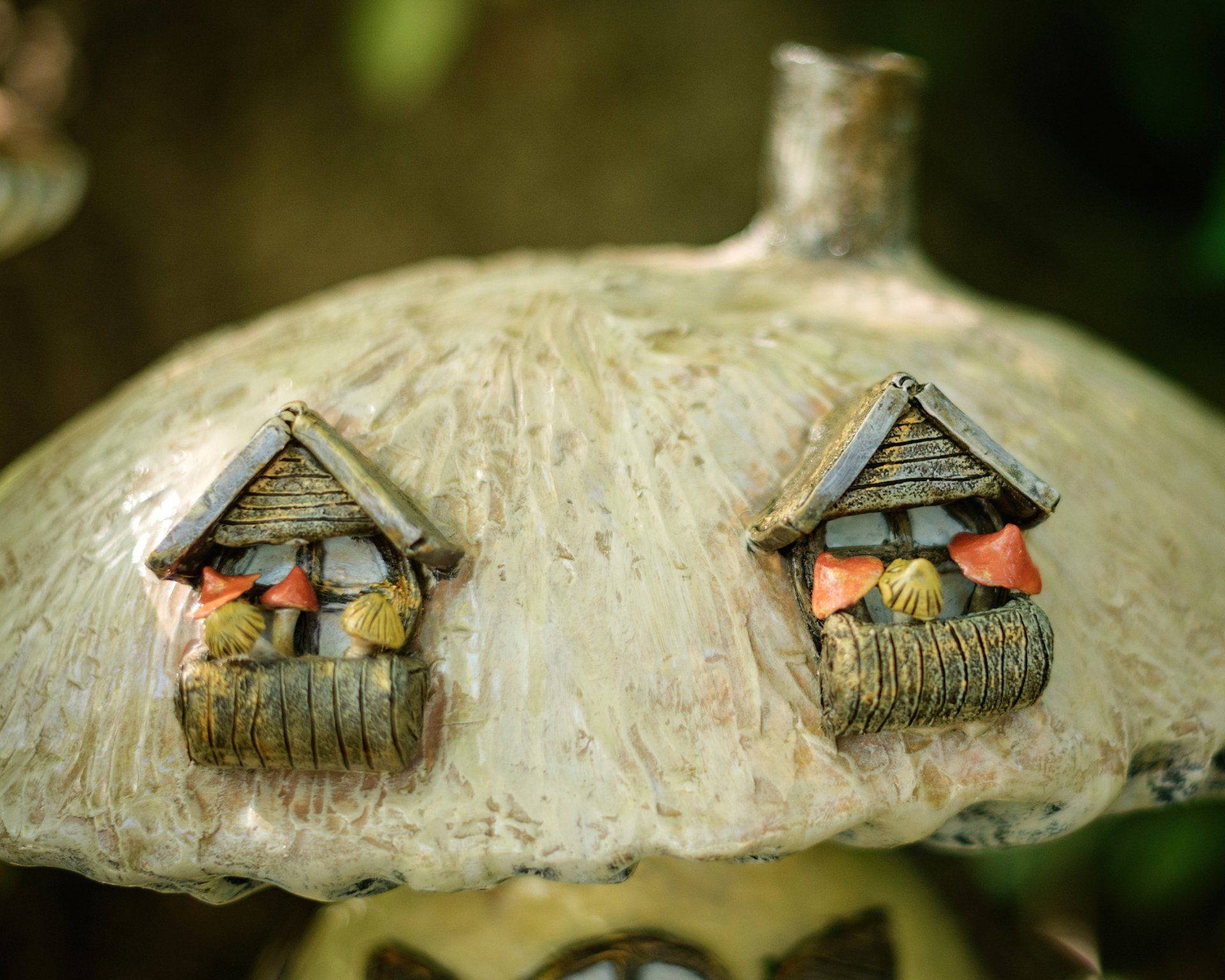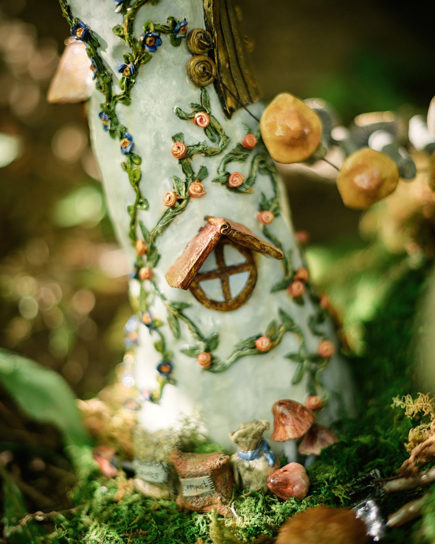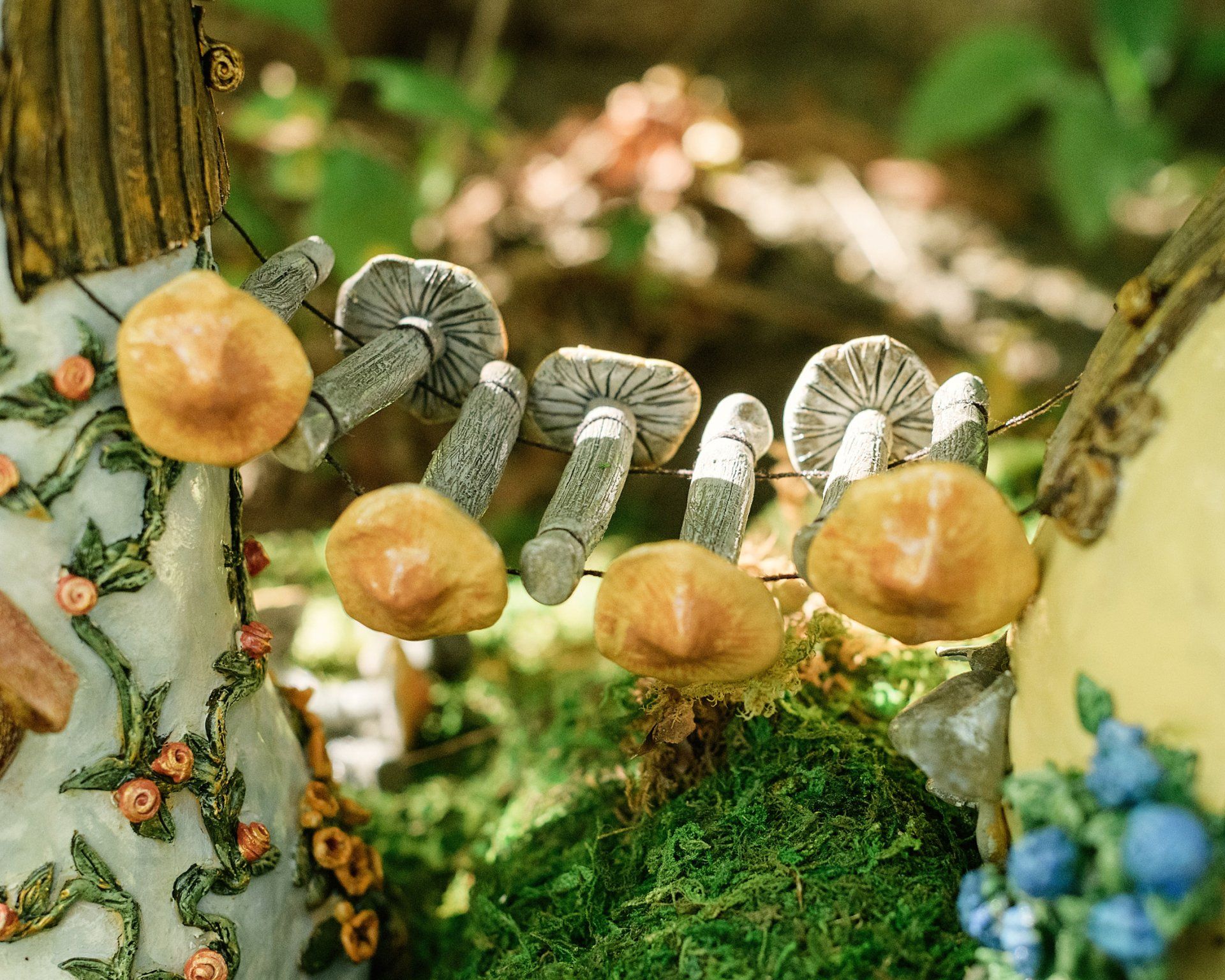 This stately structure is inhabited by the charming Lord Morel and Lady Chanterelle Toadstool. Mushroom Manor has been the Toadstool family for more than five generations and includes a labyrinth of underground tunnels and rooms. The Toadstools are ardent mycologists and dedicated caretakers of the forest’s fungi. They are also the fabulous hosts and curators of the Bumblewood Fungarium, a subterranean mushroom museum visited by fairies from near and far.