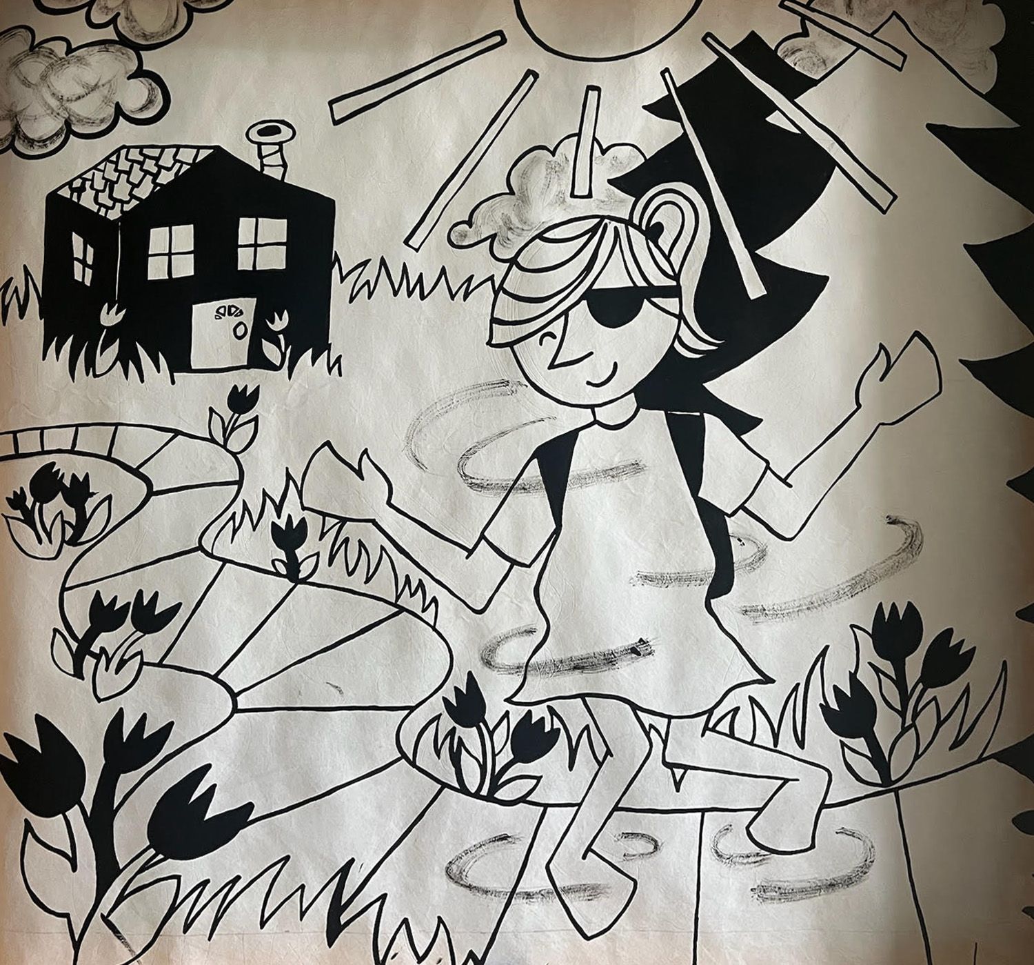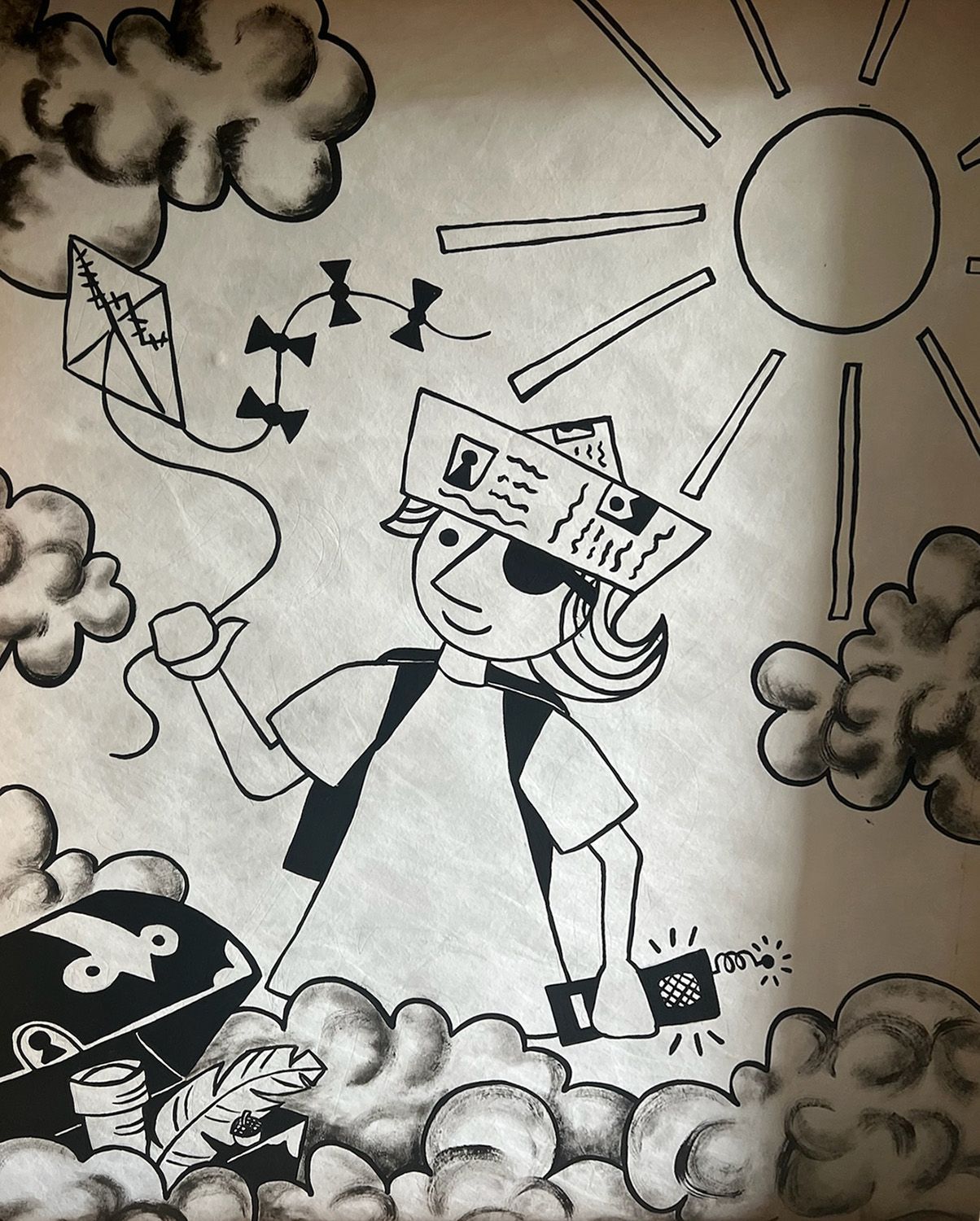 Angela returns for a second Crankie Fest with an inspiring crankie created using pencil, gouache, and tyvek. The story is inspired by a friend sharing tales about having to wear an eye patch as a kid. Angela has also always loved climbing trees. Things always look different from up above in a tree. She hopes everyone can slow down and look more closely to appreciate the world around them. The power of imagination is limitless.