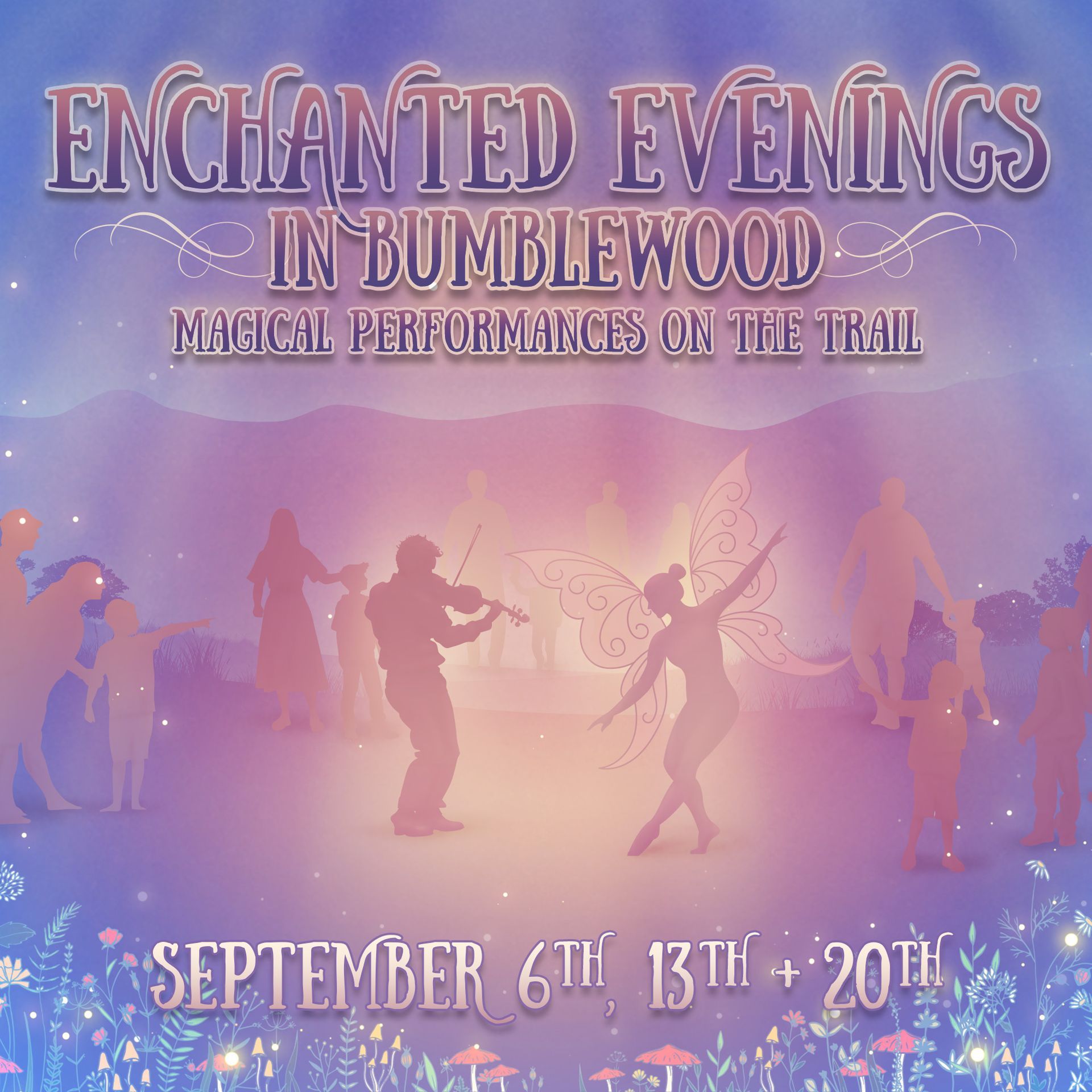 An all-ages performance of fairy themed music, story and dance in the enchanting Fairy Grove adjacent to Bumblewood Thicket fairy village.
