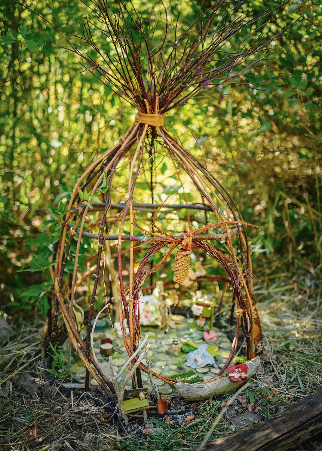 Michelle lives up a canyon and next to a ski area with her husband Chris. They are good friends with the creatures in the woods nearby, and are particularly fond of Batty, Birdy, Bunny, Fatty (a marmot) and The Mayor (a squirrel). She has made miniatures for a long time, and when not on a sewing machine or using glue, Michelle can be found on a trail. She loves to go out alone, but the best trail days are with friends, Chris, or their kids, Sam and Isabel. Michelle volunteered to help with Bumblewood Thicket in 2021. She was inspired that year to submit a proposal for 2022 and is now in her third year as a Fairy Architect. There are so many ways to connect with nature, but there is something extra joyful about a fairy house in the woods. You can find Michelle on Instagram.