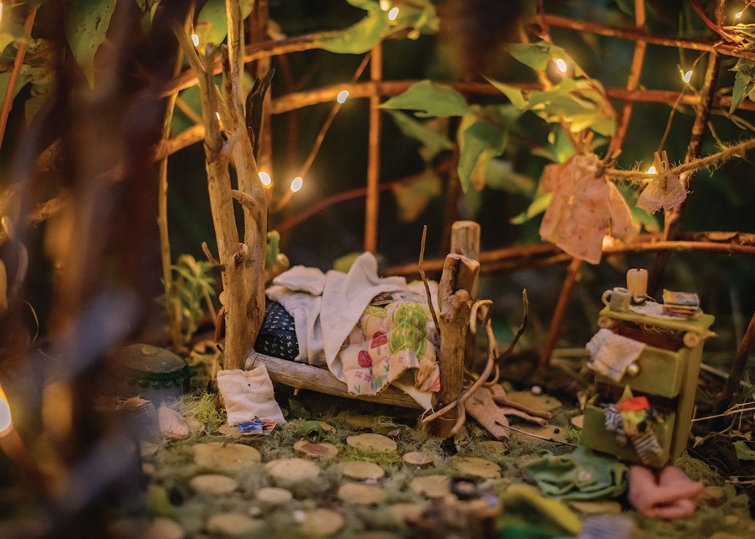 This lovely little cottage is the home of Willow Brook, a bright and sunny fairy who is always on the go, and far too busy to spend time cleaning and tidying. Willow loves nothing more than being out on the water in her kayak or on her paddleboard, and she adores her job as a river guide. She chose this spot by the river so that even when she’s on land, she can hear the water babbling. While Willow is super sporty, she also adores all things sparkly, frilly, and pretty, as you can see in her rather untidy bedroom. Willow loves to dance in her fancy outfits. Ballet, tap, waltz, or clog, she’s never met a dance she didn’t love.