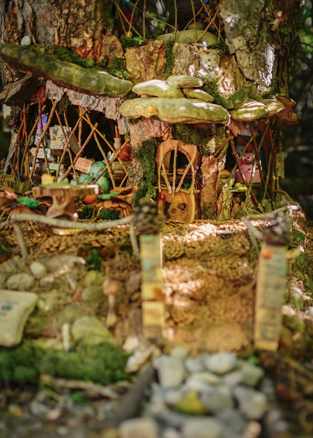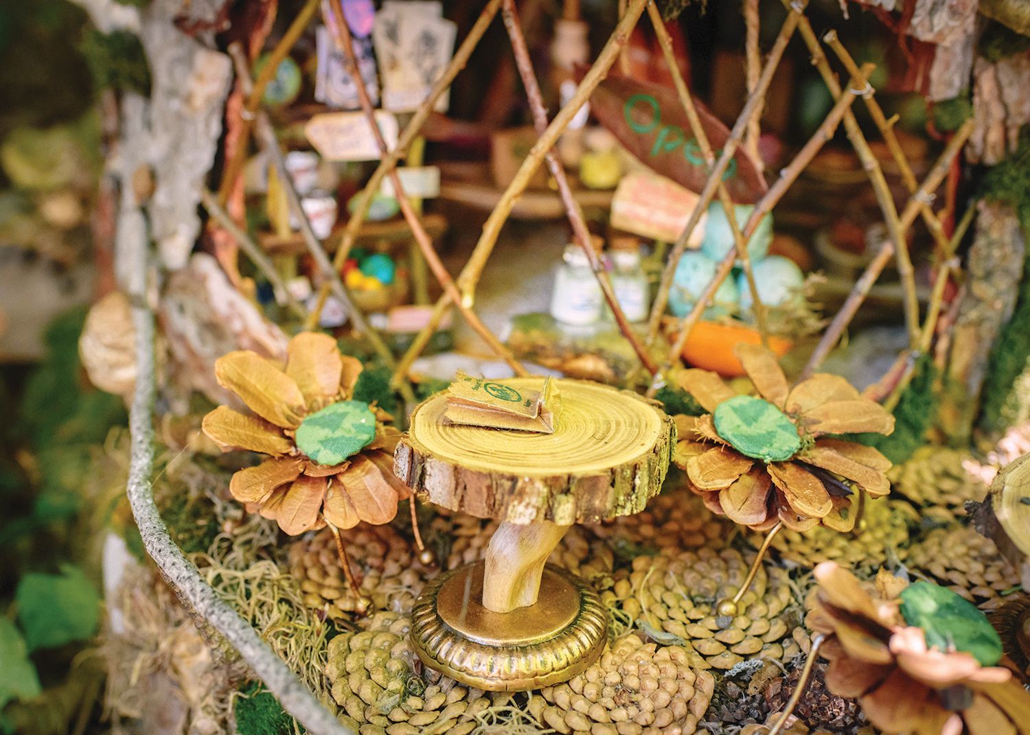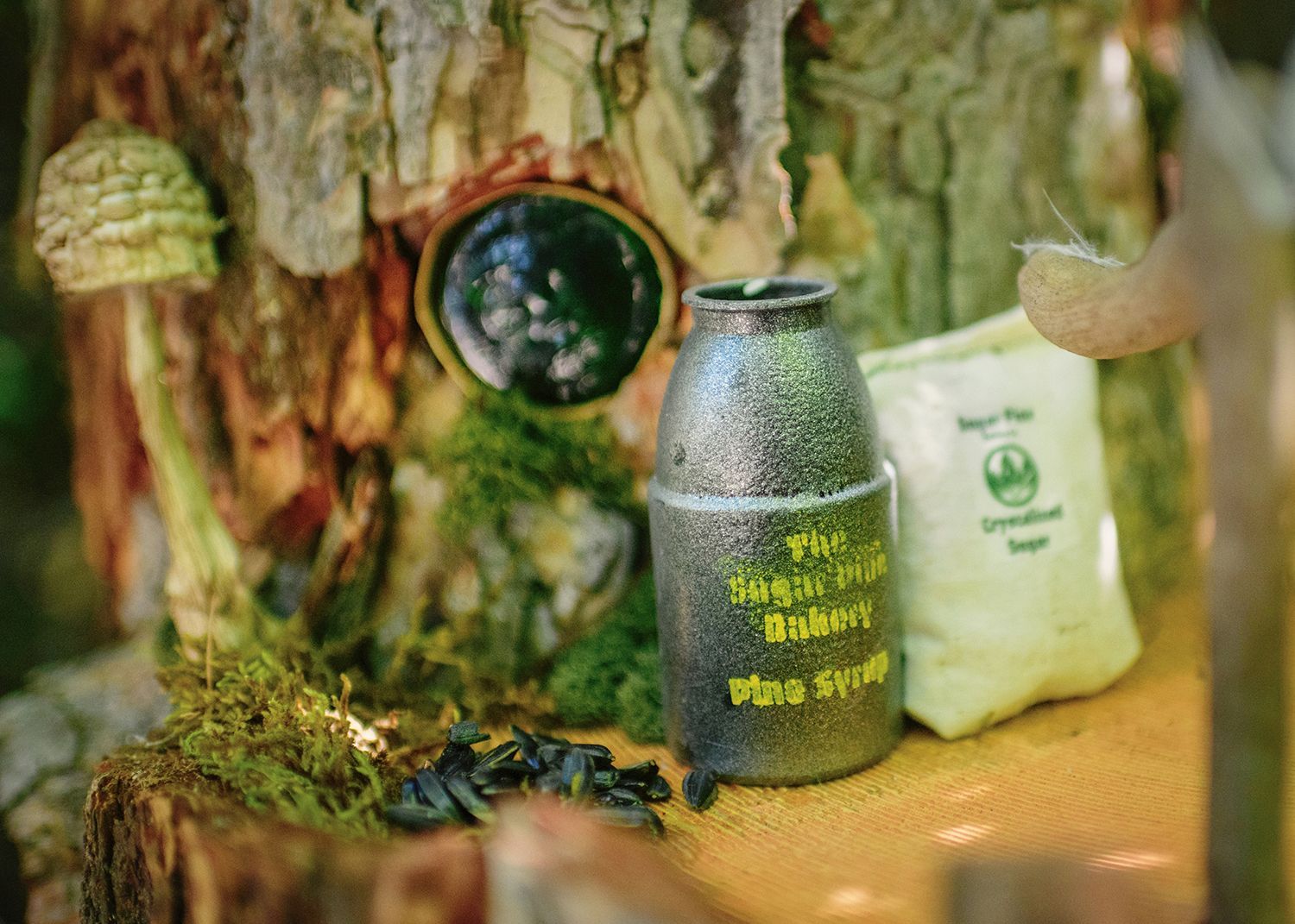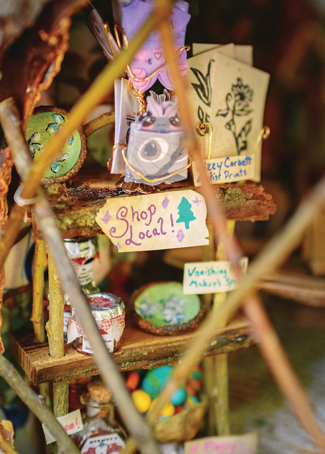 Emmi (aka Emma) moved to Bozeman from Arizona just in time to visit last year’s fairy village, and she was immediately drawn to participate. Her dogs Koda and Riley love to explore nature with her, while her cats, Ghoul, Hotdog, and Pigeon, are very content to wait for her at home. Emmi loves designing and creating stickers and greeting cards (some of which you might spy in the Shop Local section of the bakery) and she uses natural and foraged elements to make curiosity displays featuring bugs and bones. The Sugar Pine Bakery concept is an homage to her home in Arizona on the Mogollon Rim, where sugar pine trees nestle among the ponderosas and she and her best friend delighted in tasting their sweet sap and smelling their sugar cookie aroma. You can find Emmi and her sister selling their art at local farmers markets, and you can explore her work online here.