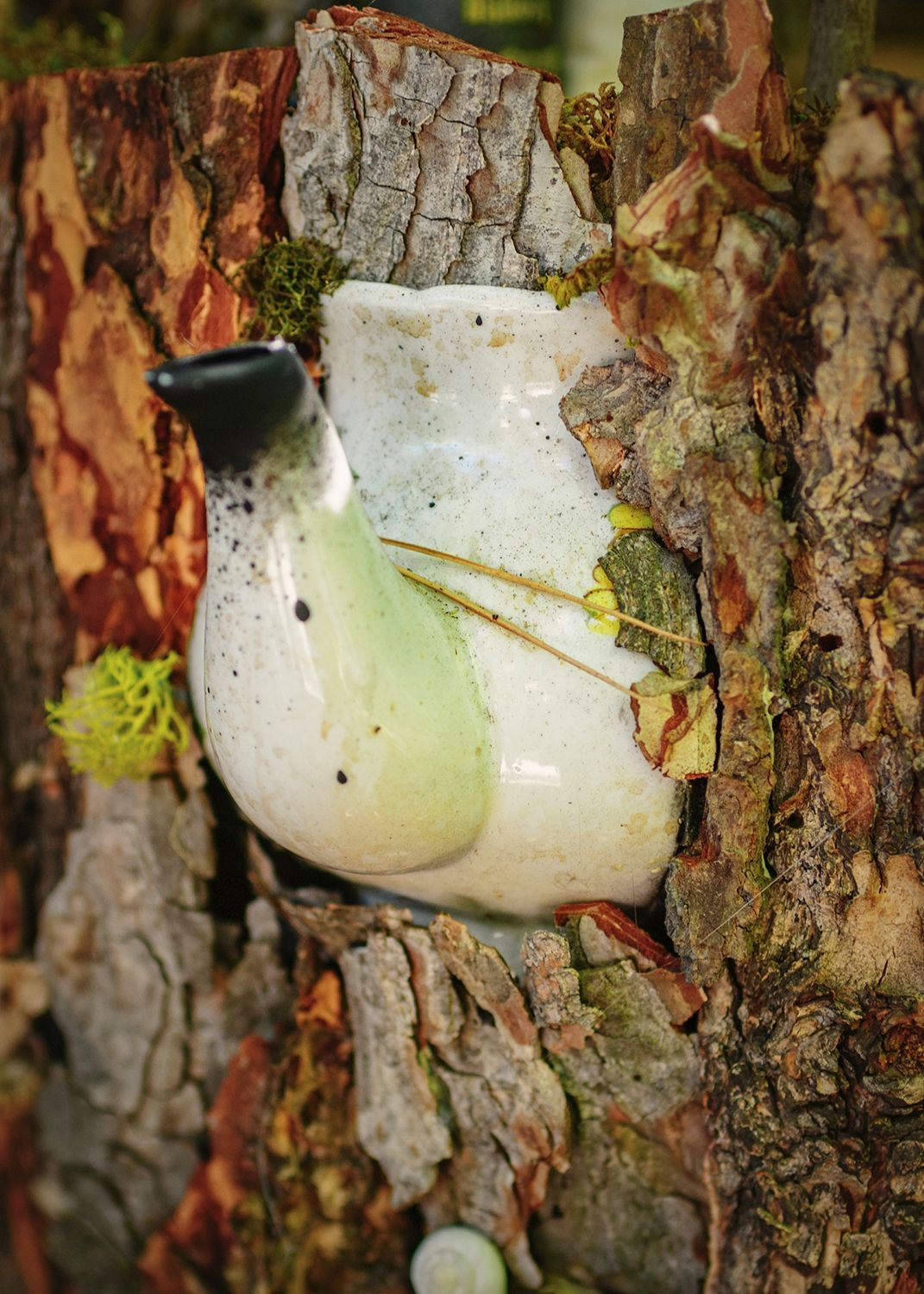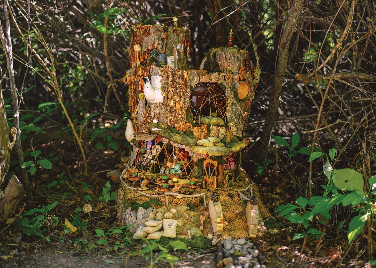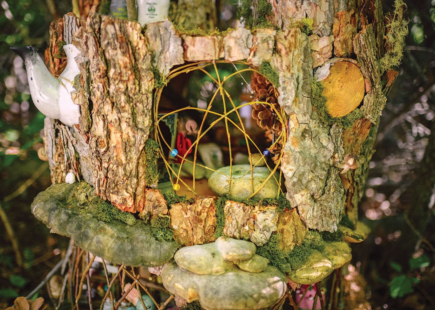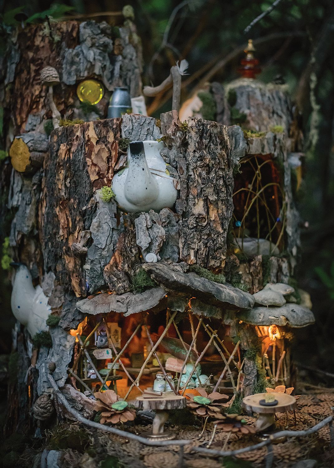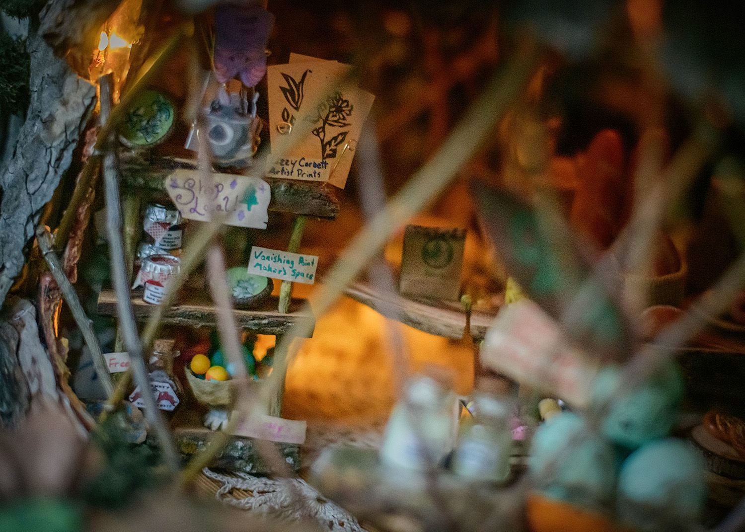 Emmi (aka Emma) moved to Bozeman from Arizona just in time to visit last year’s fairy village, and she was immediately drawn to participate. Her dogs Koda and Riley love to explore nature with her, while her cats, Ghoul, Hotdog, and Pigeon, are very content to wait for her at home. Emmi loves designing and creating stickers and greeting cards (some of which you might spy in the Shop Local section of the bakery) and she uses natural and foraged elements to make curiosity displays featuring bugs and bones. The Sugar Pine Bakery concept is an homage to her home in Arizona on the Mogollon Rim, where sugar pine trees nestle among the ponderosas and she and her best friend delighted in tasting their sweet sap and smelling their sugar cookie aroma. You can find Emmi and her sister selling their art at local farmers markets, and you can explore her work online here.