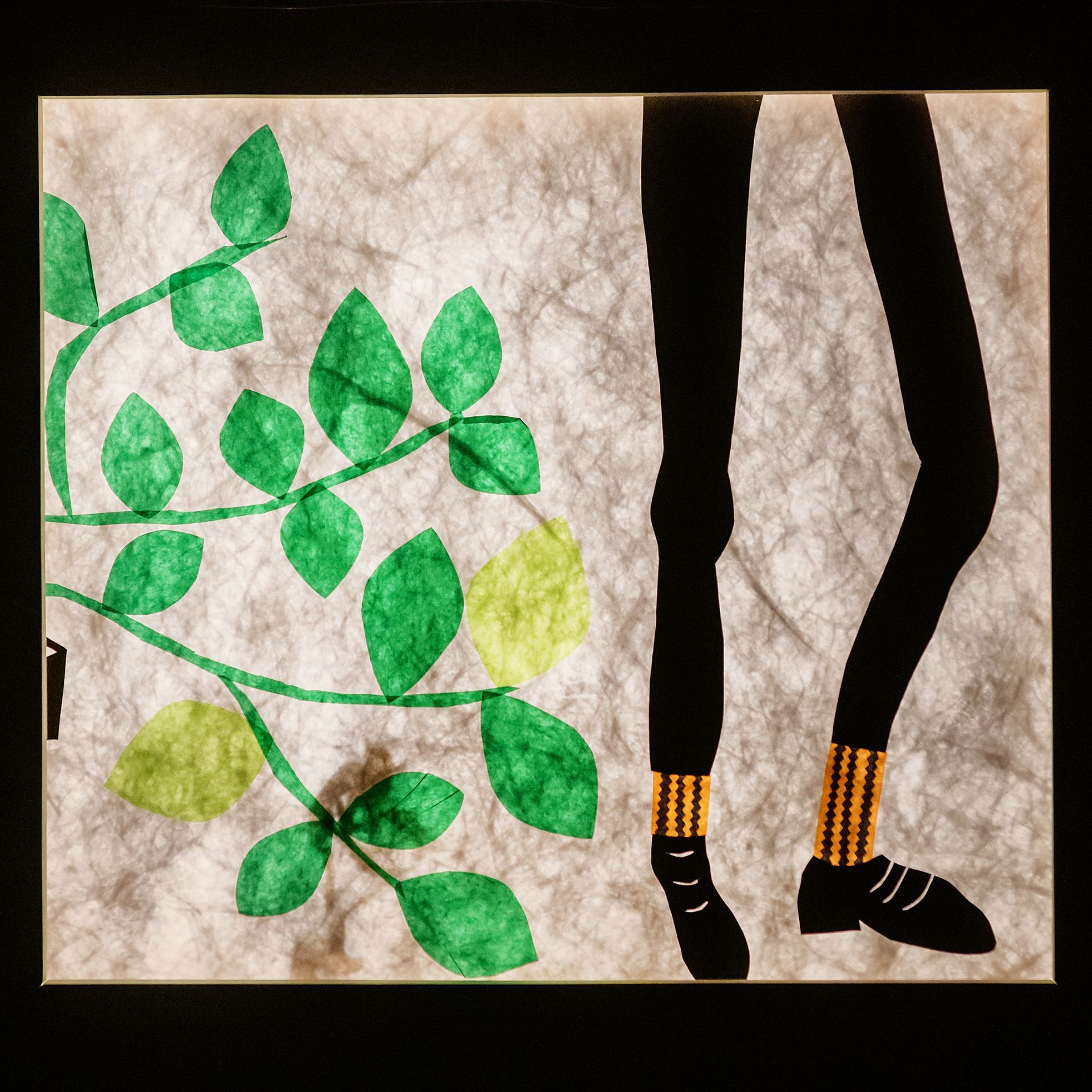 The “Sock Goblin” was adapted from a children’s book by Rose Arrowsmith. It addresses a question that has plagued us since the dawn of humankind: why do our socks disappear and where do they go? The scroll was made with hand cut tyvek silhouettes and tissue paper. It featured original music written and performed by August.