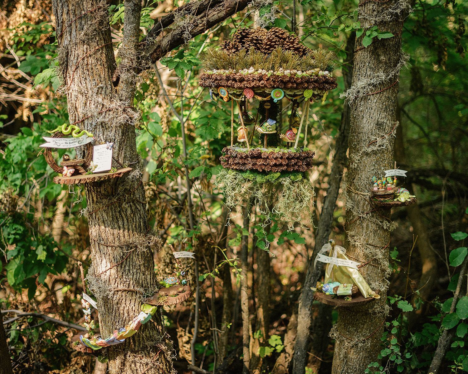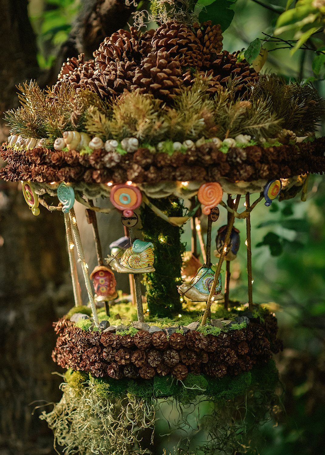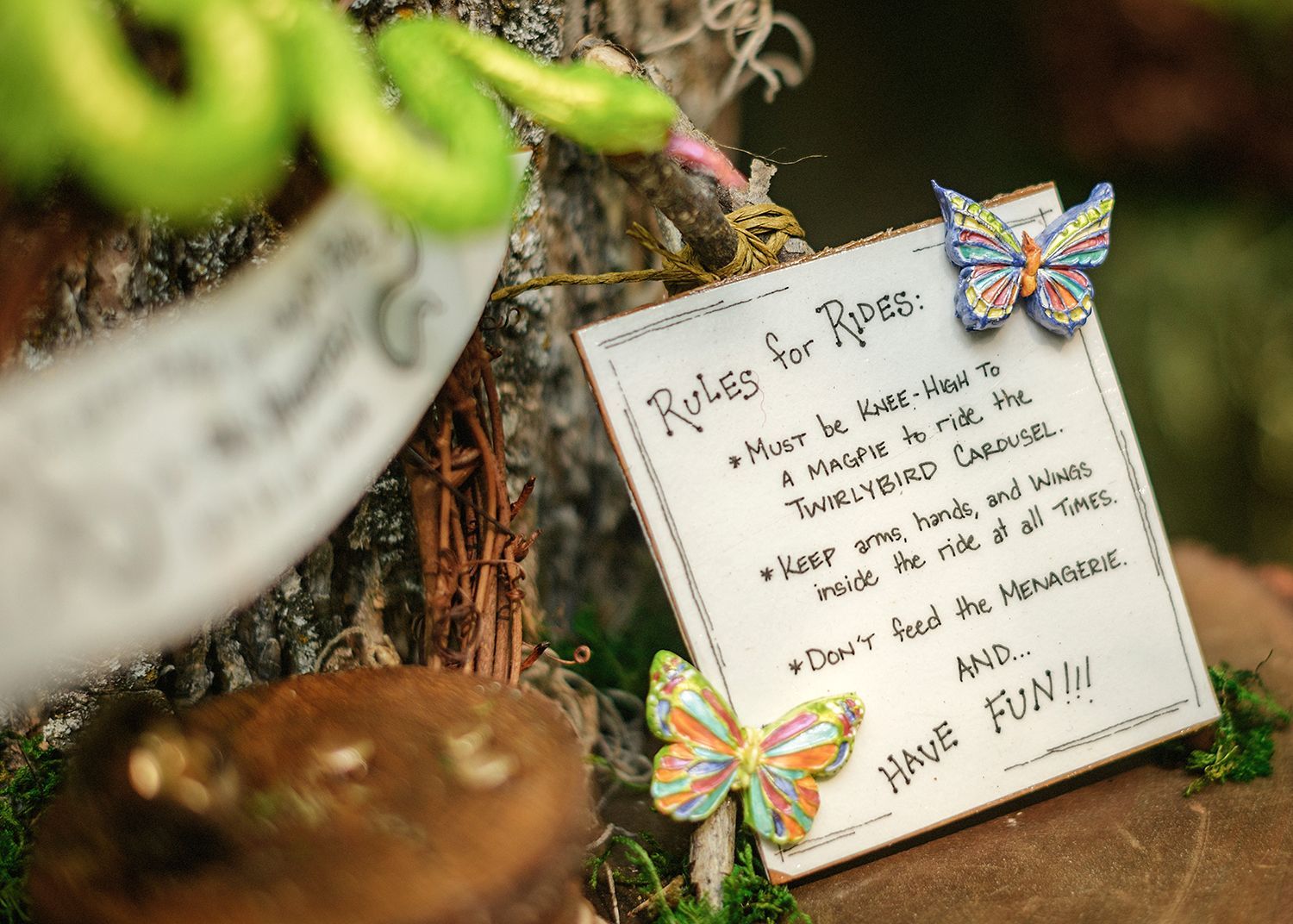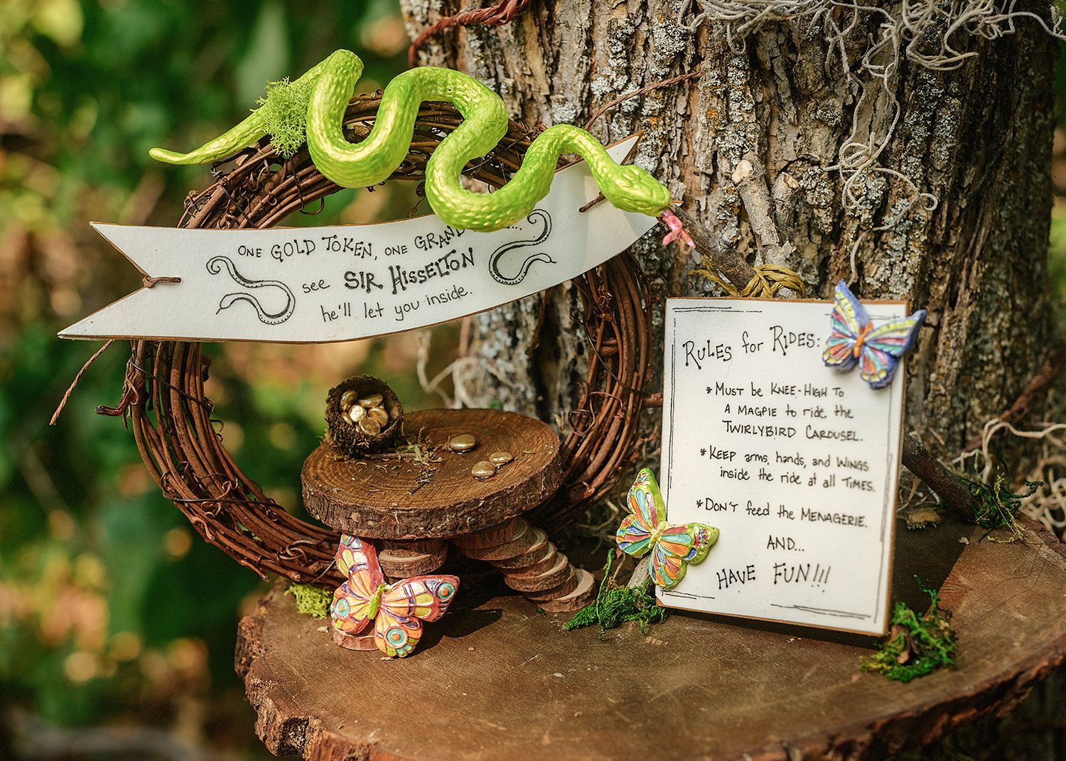 Welcome to the Twirlybird Carousel, owned and operated by Lamella Olyphant. You might think that a carousel powered by snails would be painfully slow, but not so at the Twirlybird! Hop in the saddle and hold on, as it can really get a-twirling! If you haven’t lost your lunch, be sure to enjoy a sweet treat provided by Flossie’s Candy Emporium and take a moment to explore the menagerie playground. Nobody knows where the animals in the menagerie came from, and Lamella won’t tell. Rumor has it that if you turn your back, they might wake up and move around. If you look out of the corner of your eye, you might just see a wing flap or a tail wiggle!