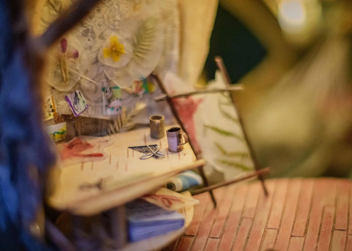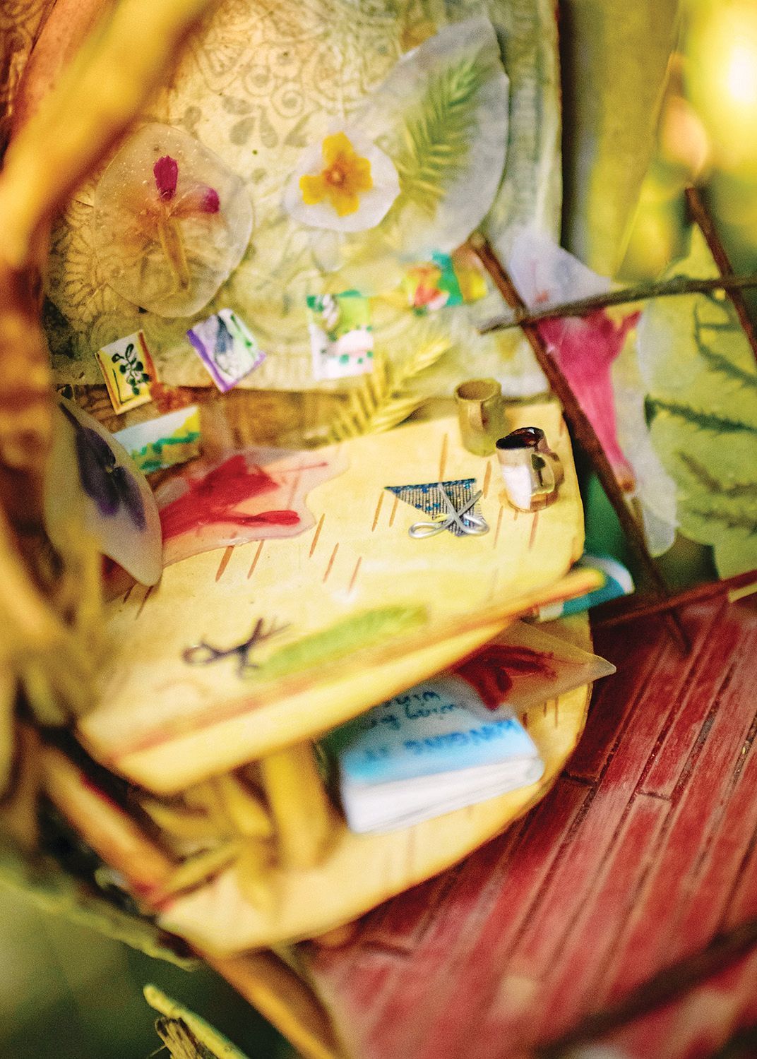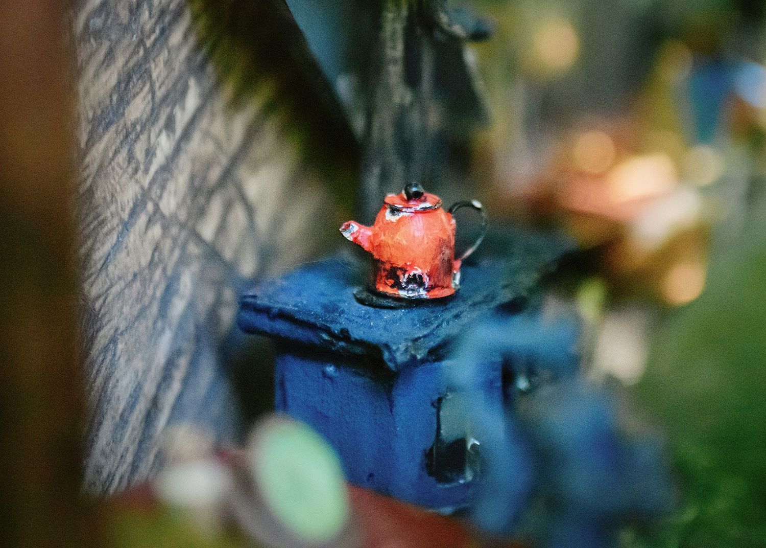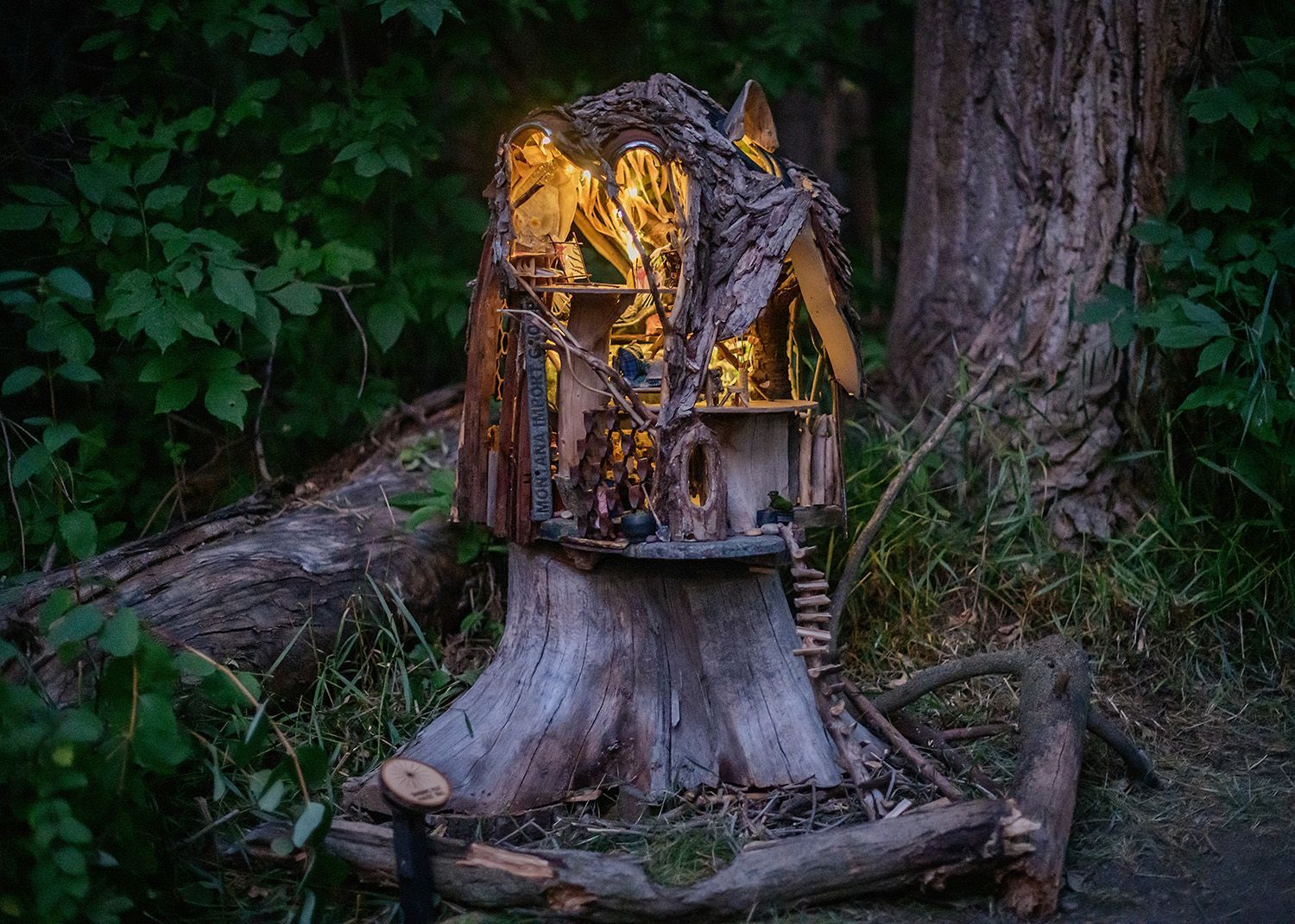 Kenda lives in Bozeman with her wife Linda, dog Larry, and three cats: Jean Bean, Bellatrix, and Sir. Gimlet. Kenda is an artist who also dabbles with gardening and mending, and obsessively collects odd objects. Flutterby Thicket, the first fairy village in 2020, was her inspiration to get involved and she also participated in the 2022 fairy village. She shares a lot of characteristics with Twig, including the Borrower ancestry.
