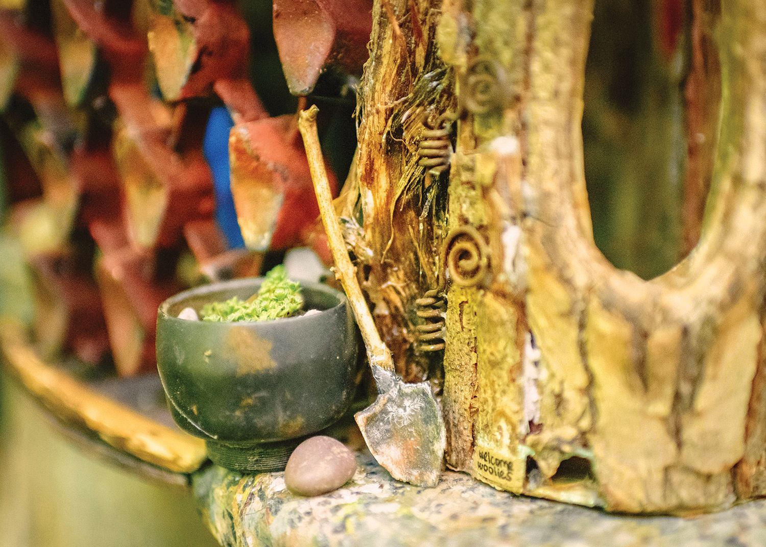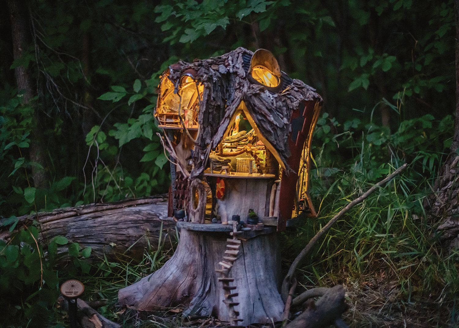 Vanishing Point Makers’ Space is a welcoming sanctuary for creatives and iconoclasts of all ilks. This space is the place to hang out, learn, and dabble in a variety of art forms, preferably while drinking mug after mug of dark dandelion root coffee. Its steward is Twig Woodenbridge, an endlessly inventive maker who builds, repairs, and reuses found objects. They do remodeling and repairs for the community, but their favorite projects are those involving art and design. They often go down literal rabbit holes to solve design challenges, coming up with unique and out of the den solutions.