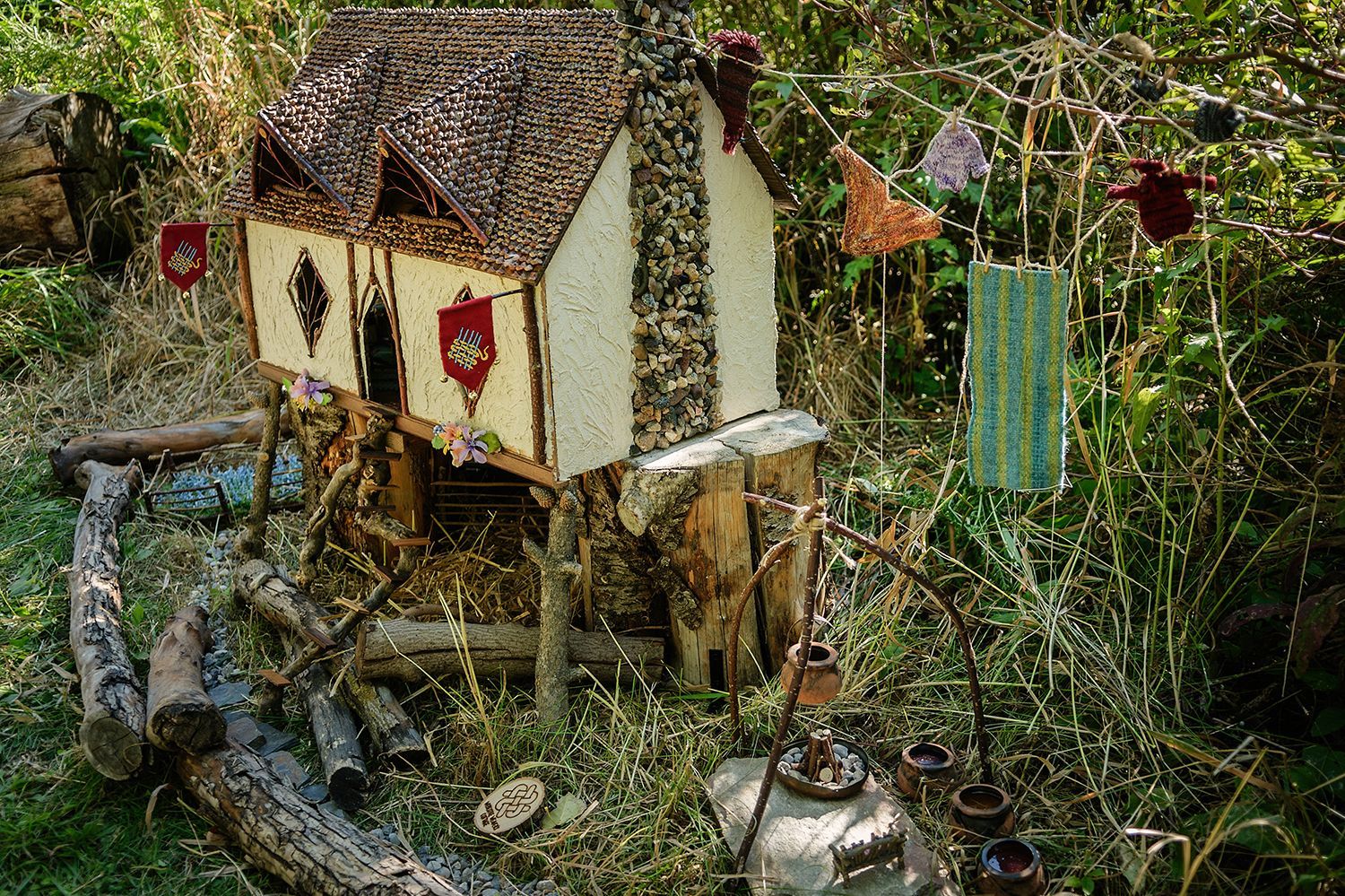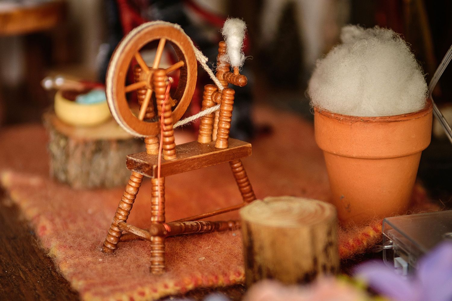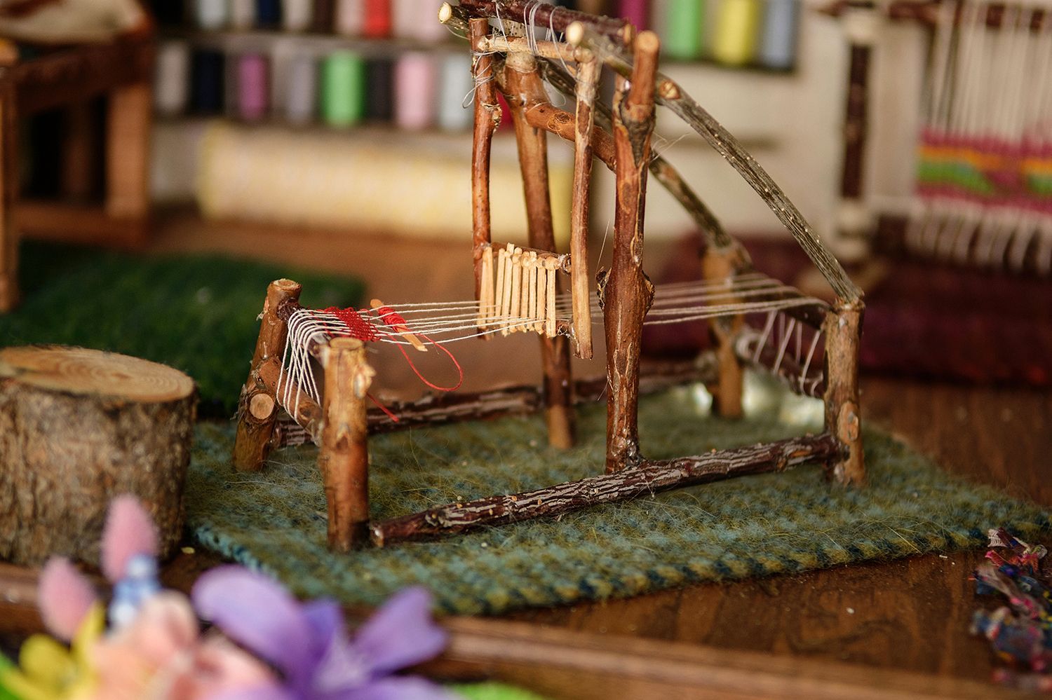 The Weaver's Cottage was created by members of the Bozeman Weavers Guild. The Guild was organized in 1968 as a 501 c(3) organization and has approximately 50 members. Members are weavers, spinners, dyers, knitters, and doers of many other fiber crafts, and a few of them also raise sheep. In addition, the Guild members also occasionally offer classes to help folks learn to weave. Bozeman Weavers Guild has undertaken the building of Webestre Weaver's Cottage to show the range of fiber related crafts that are both historical and still being done today. They became interested in participating after seeing the previous years' Bumblewood Villages. You can find the guild on their website.