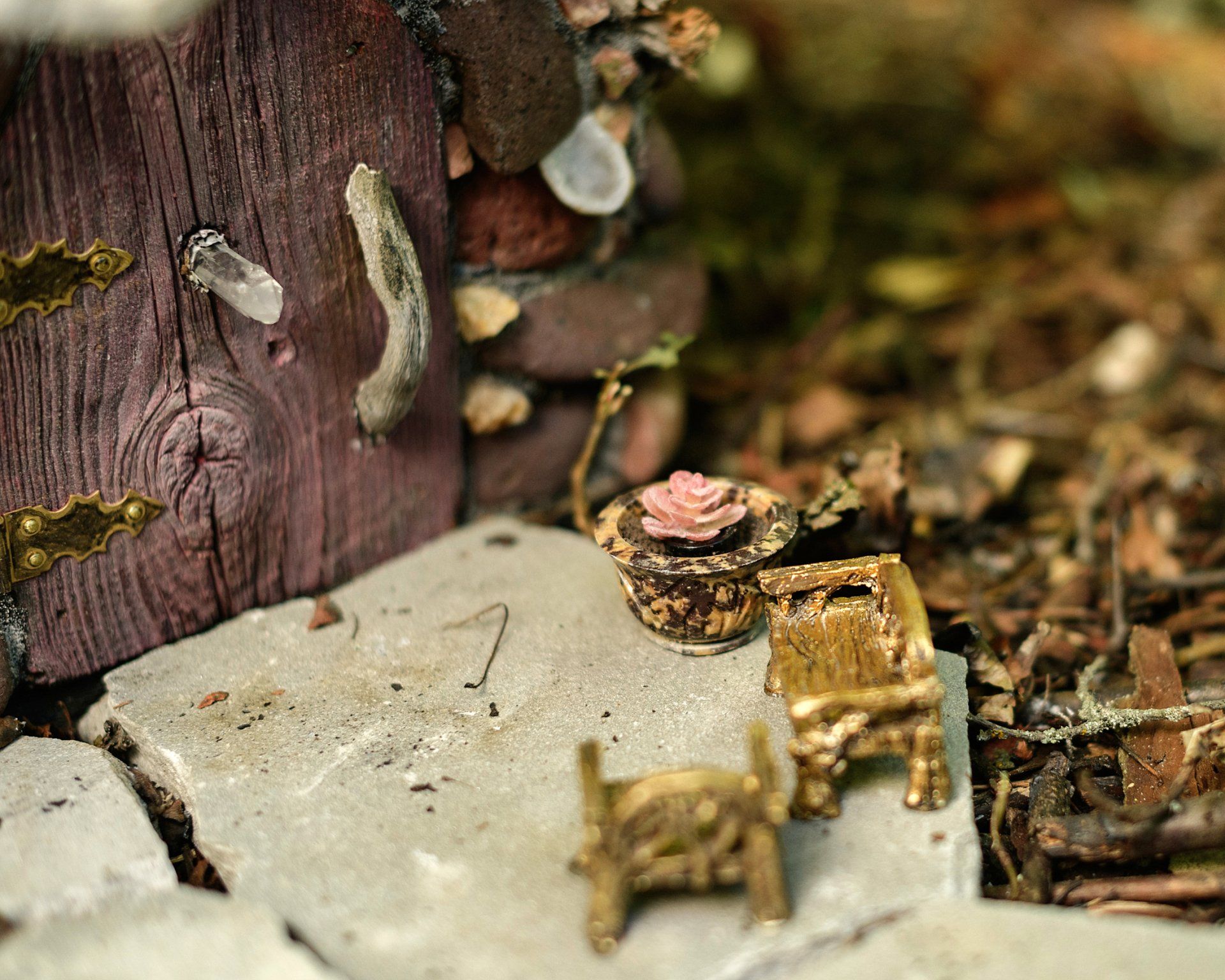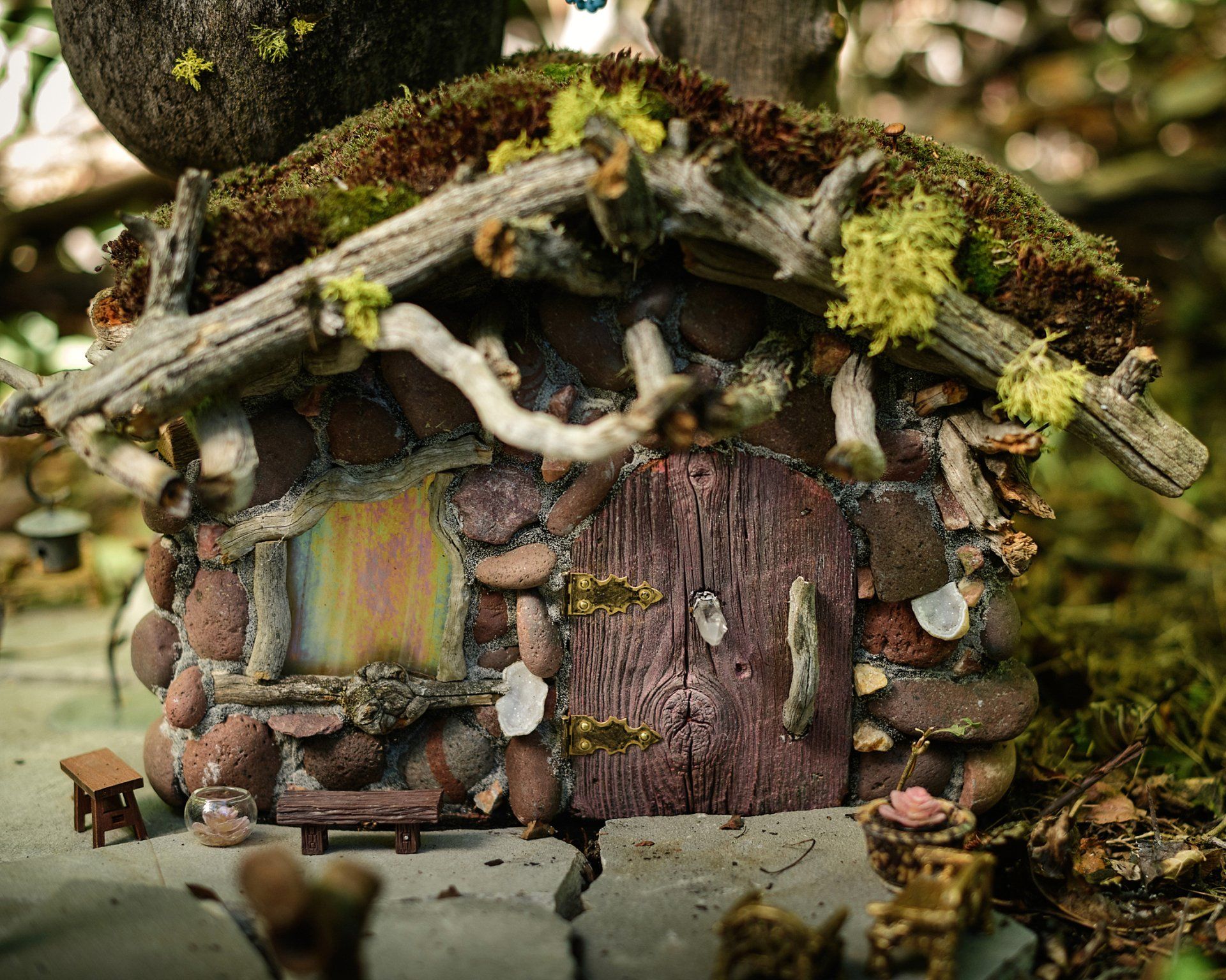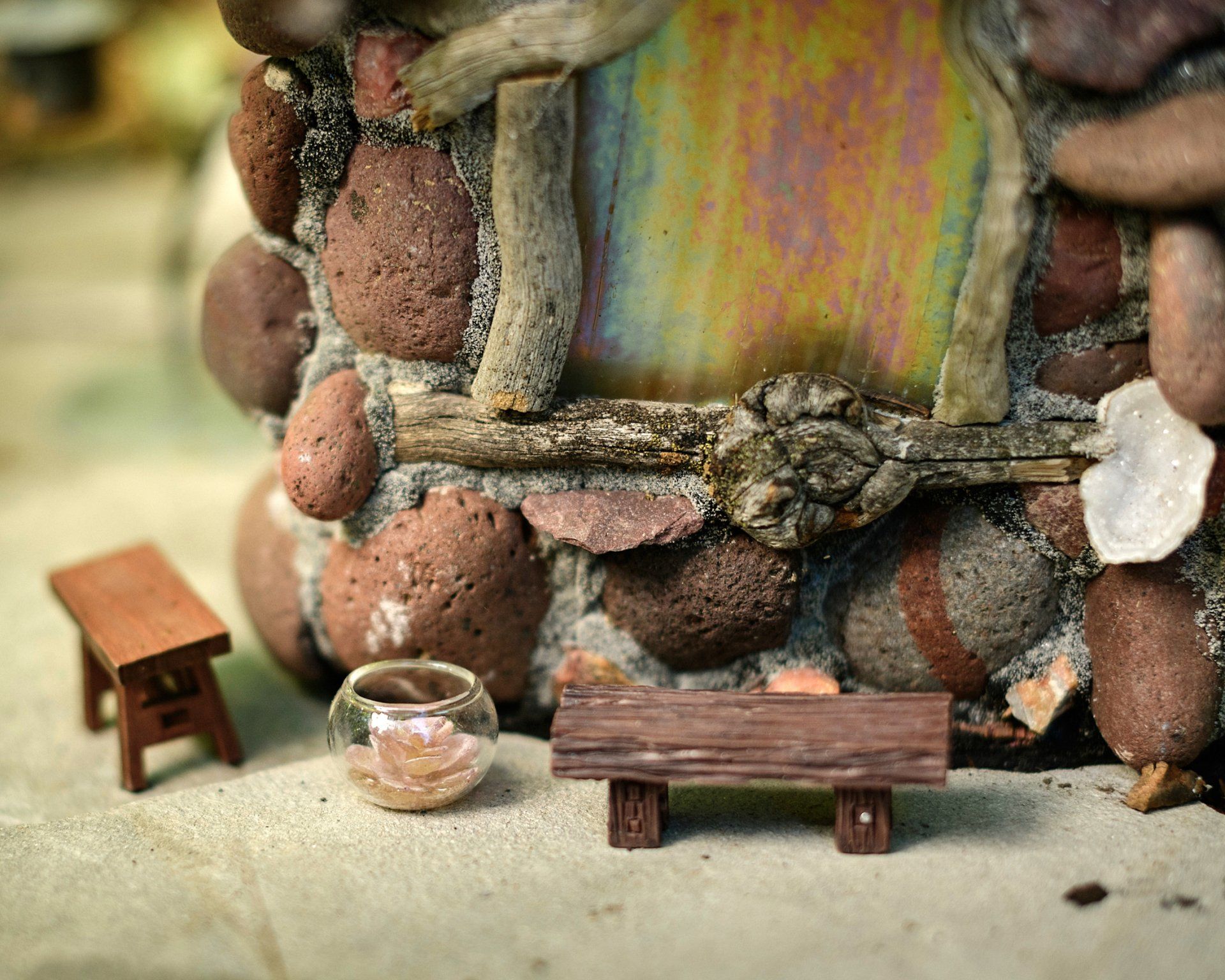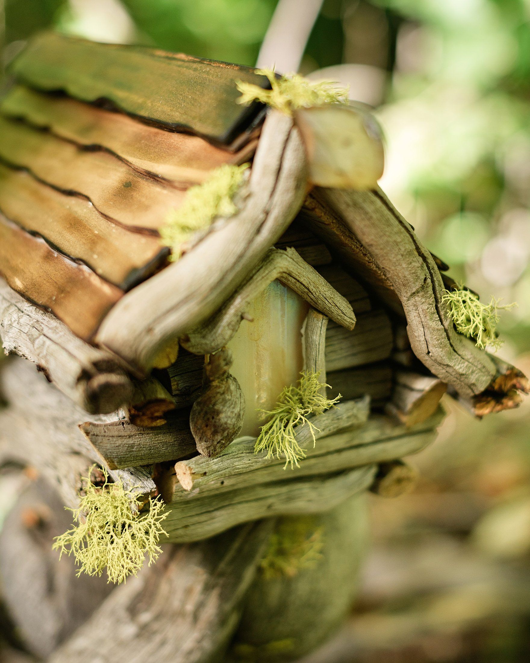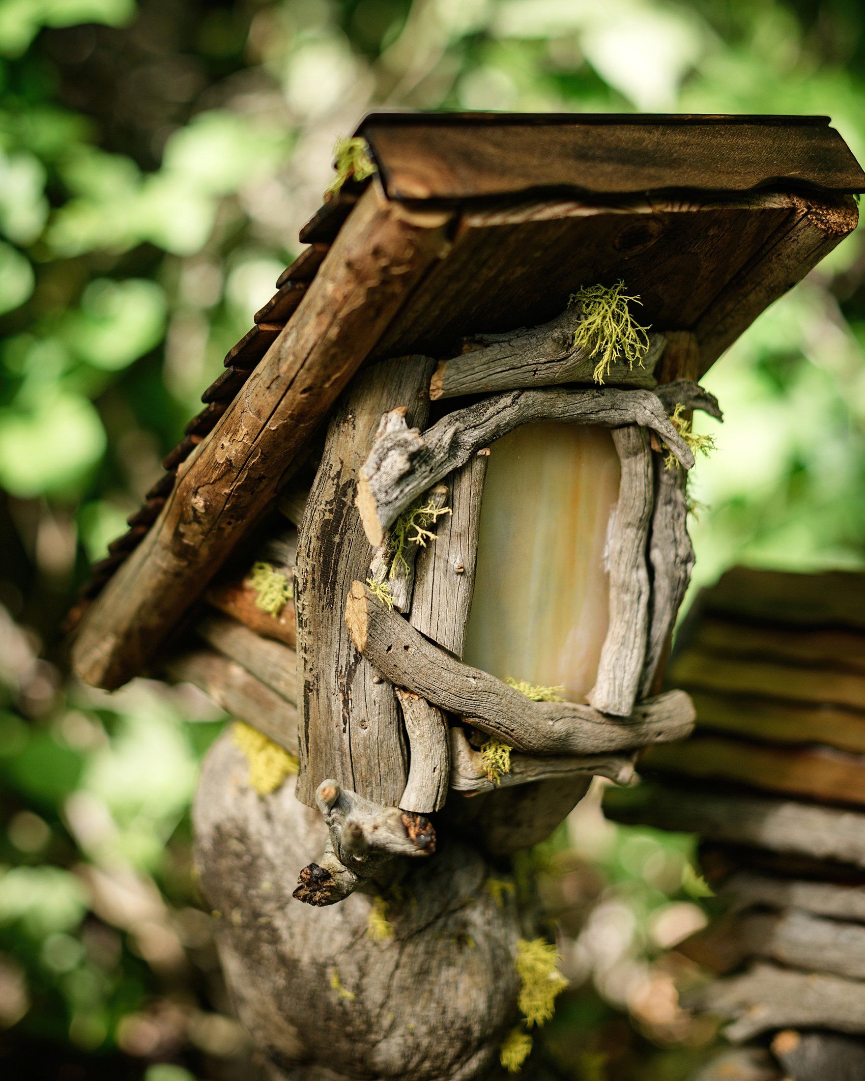 This burled bungalow is the home of Ember Wildfire, a fiery fairy known for her feistiness. Hot tempered and bit reckless, she occasionally throws off sparks when particularly excited. This has caused some consternation in the neighborhood, especially next door at the lookout tower. She has even been doused with water a time or two by a well-meaning neighbor! Over time, Ember has learned to connect with the more positive parts of her hot temper: passion, courage and tenacity.