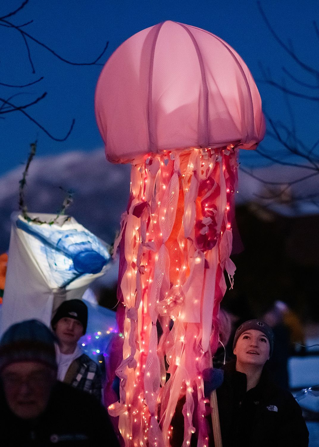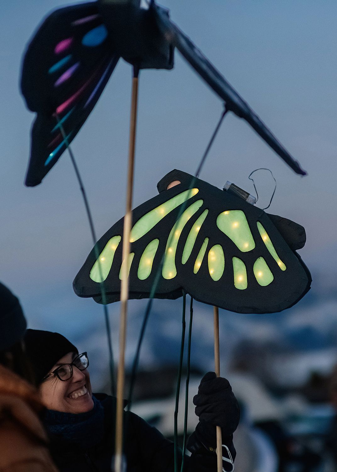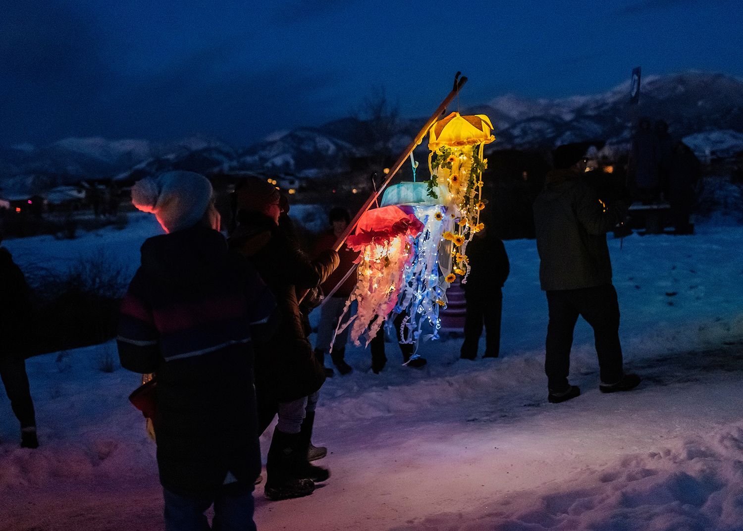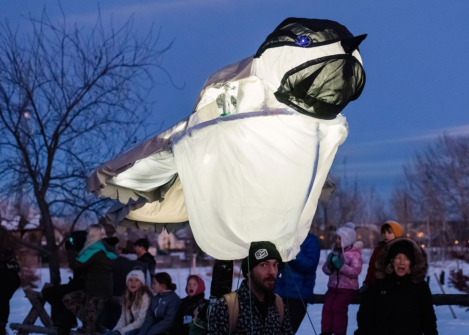 About the lanterns: The 2024 parade included more than 300 lanterns from many different places: community workshops and many creative families and individuals.In addition to the community created lanterns, the paraded feature special large scale lanterns created by local artists Thomas Dunning, Matt Cameron, Angela Yonke, Grace Washko, and Montana State University Art students. These artists received creative and technical support by professional lantern artist Gabs.