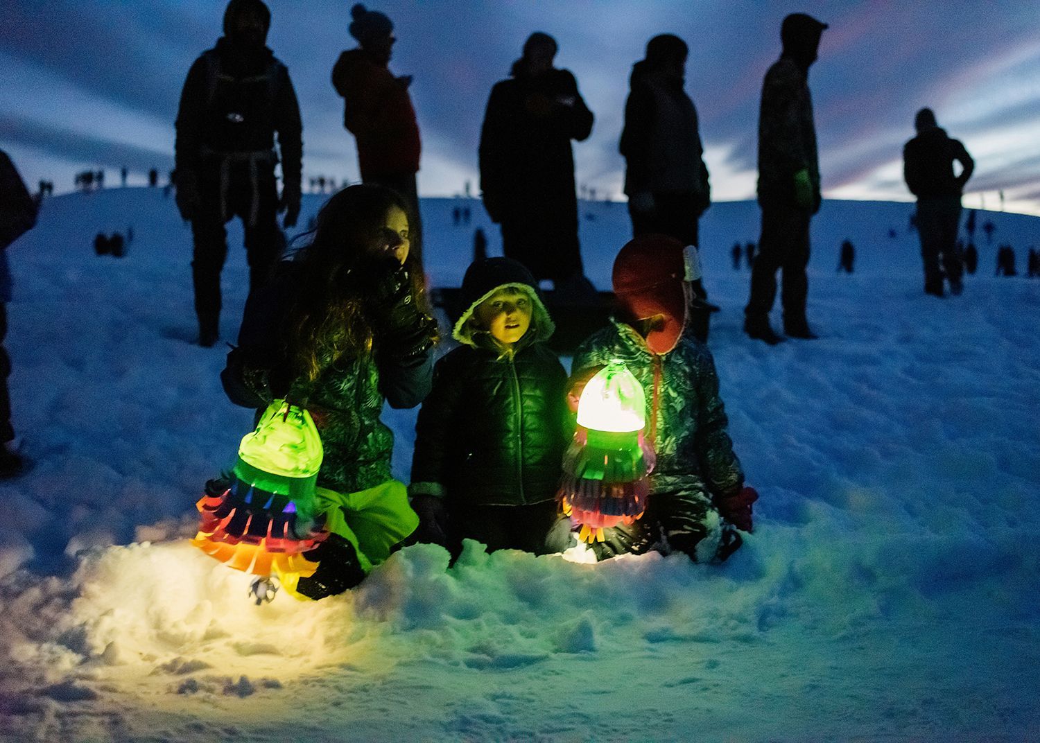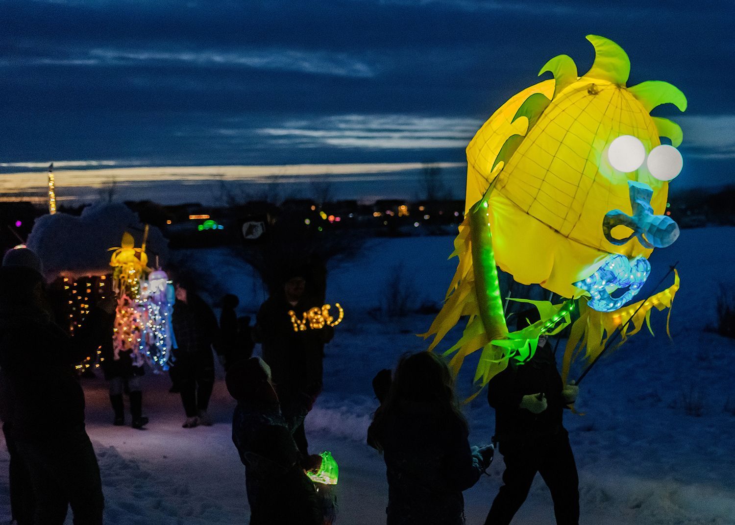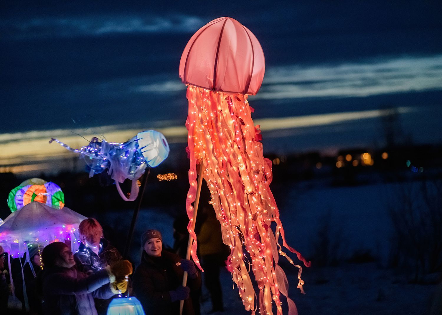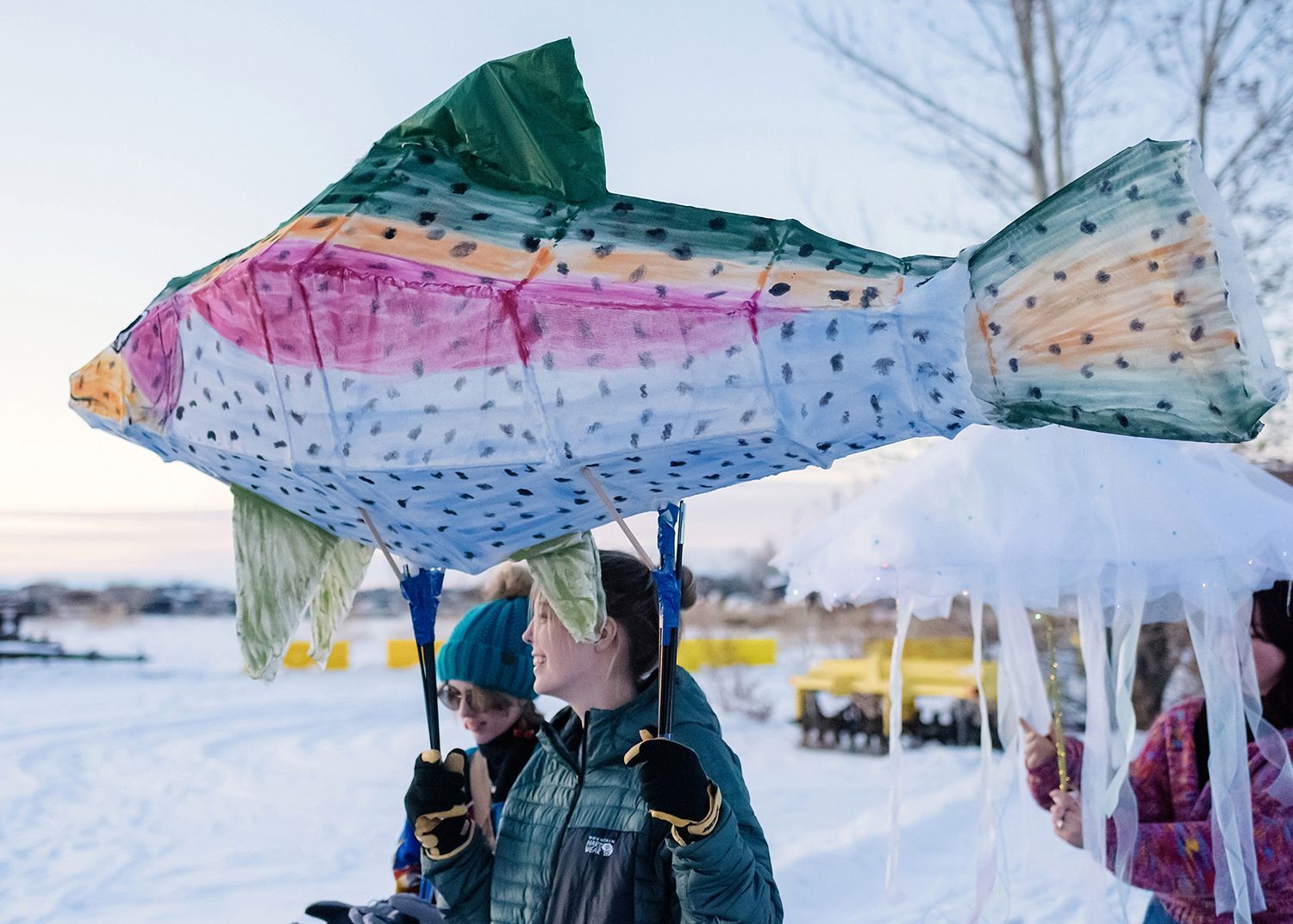 About the lanterns: The 2024 parade included more than 300 lanterns from many different places: community workshops and many creative families and individuals.In addition to the community created lanterns, the paraded feature special large scale lanterns created by local artists Thomas Dunning, Matt Cameron, Angela Yonke, Grace Washko, and Montana State University Art students. These artists received creative and technical support by professional lantern artist Gabs.