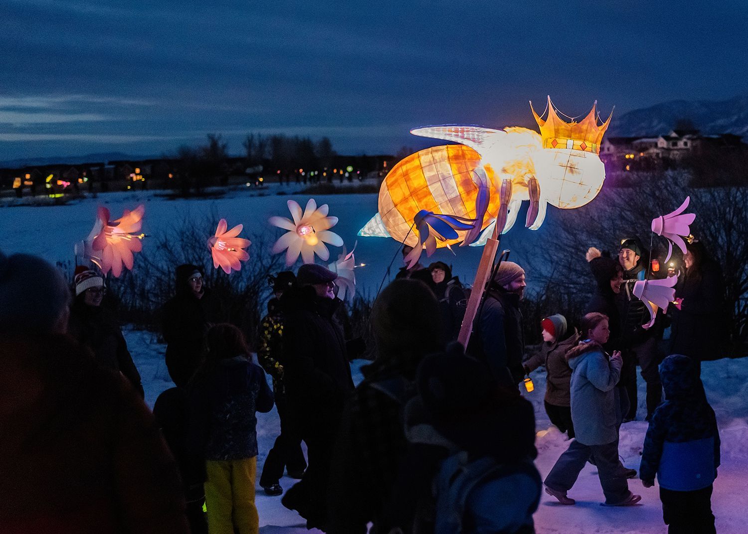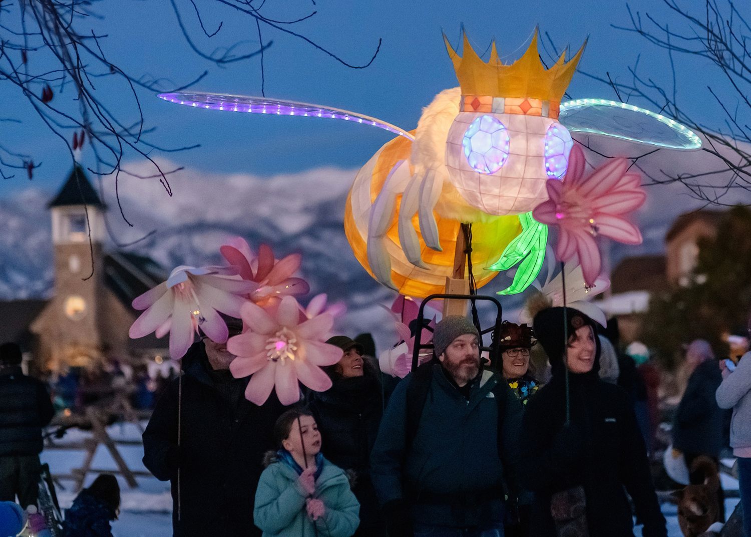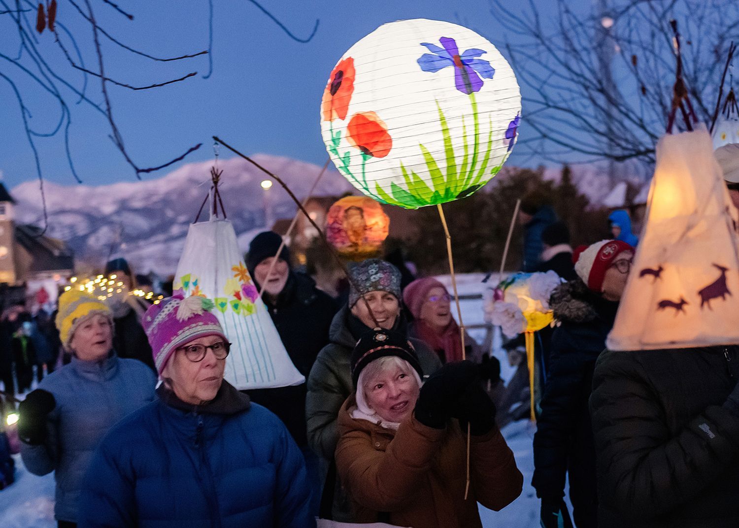 Winter Bloom Lantern Parade illuminated the darkness with joy and light. The parade included hundreds of glowing lanterns created and carried by Gallatin Valley artists and community members, accompanied by singers from the Bozeman Symphonic Choir with members of the Greater Yellowstone Threshold Choir.
