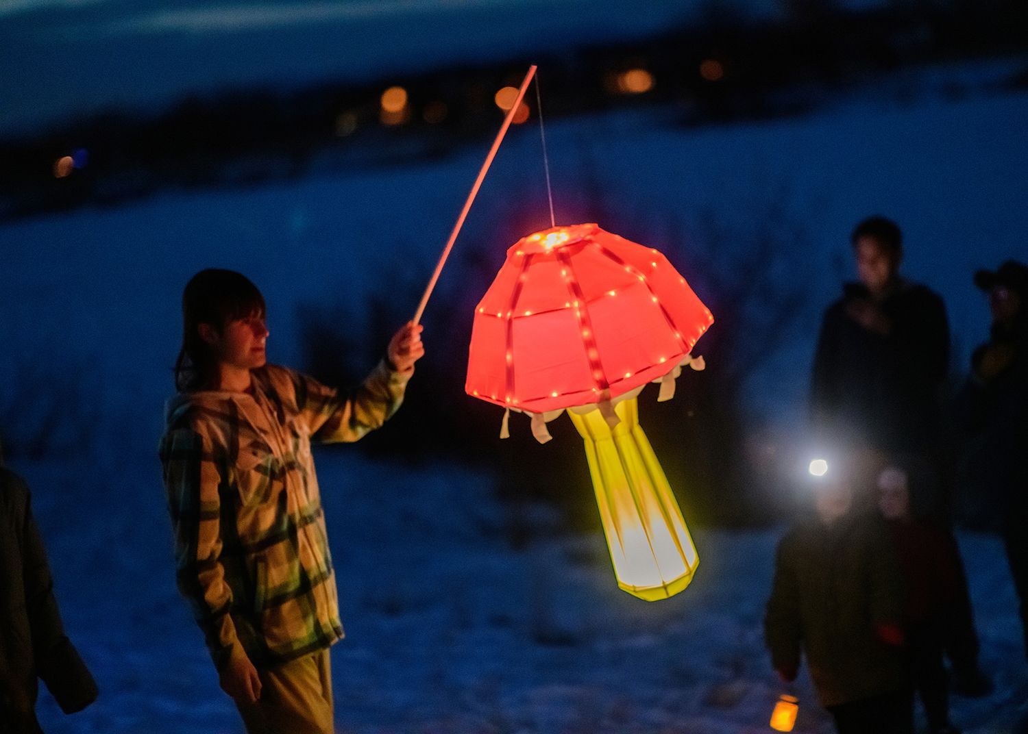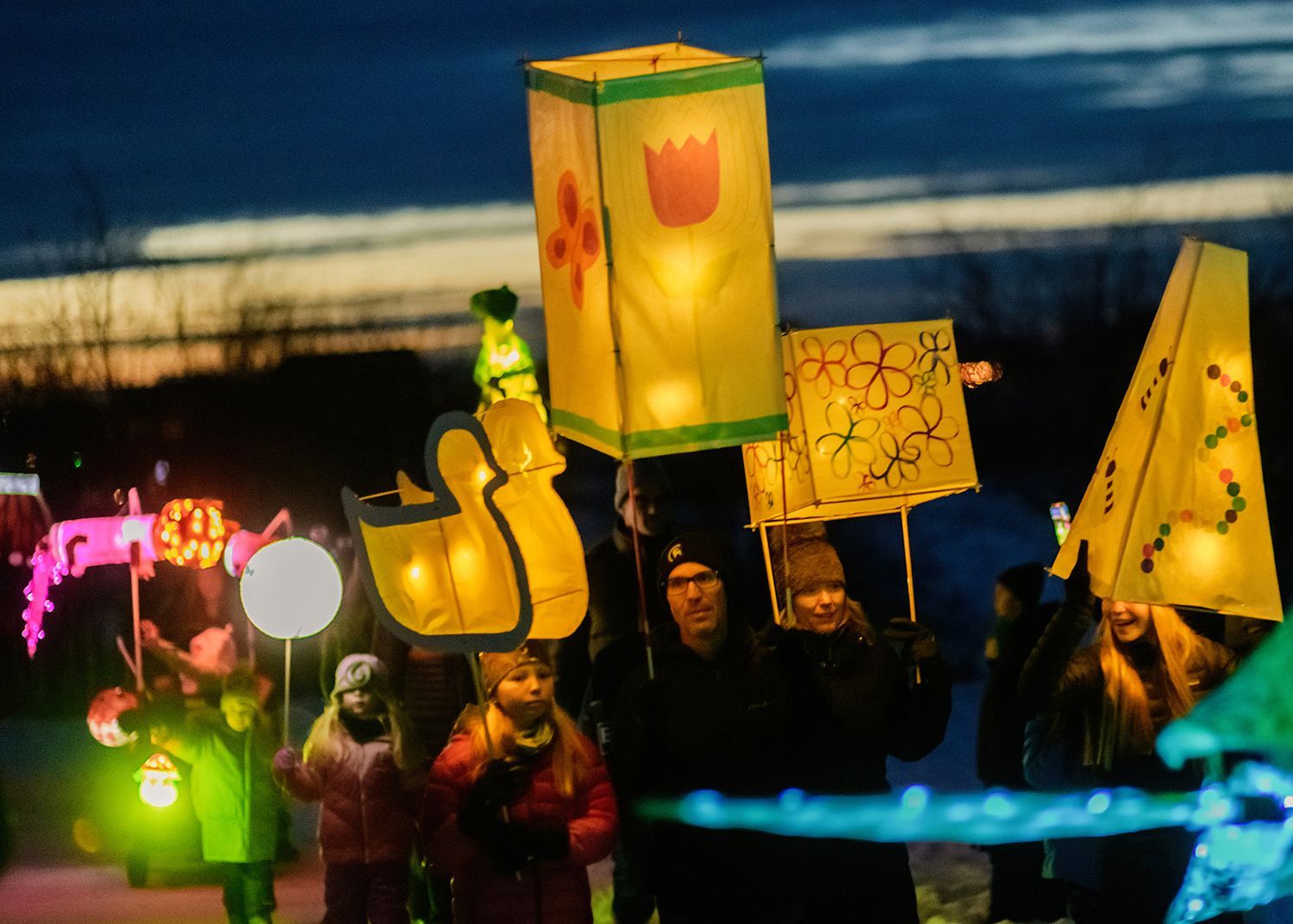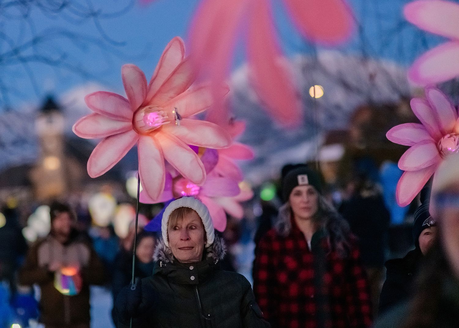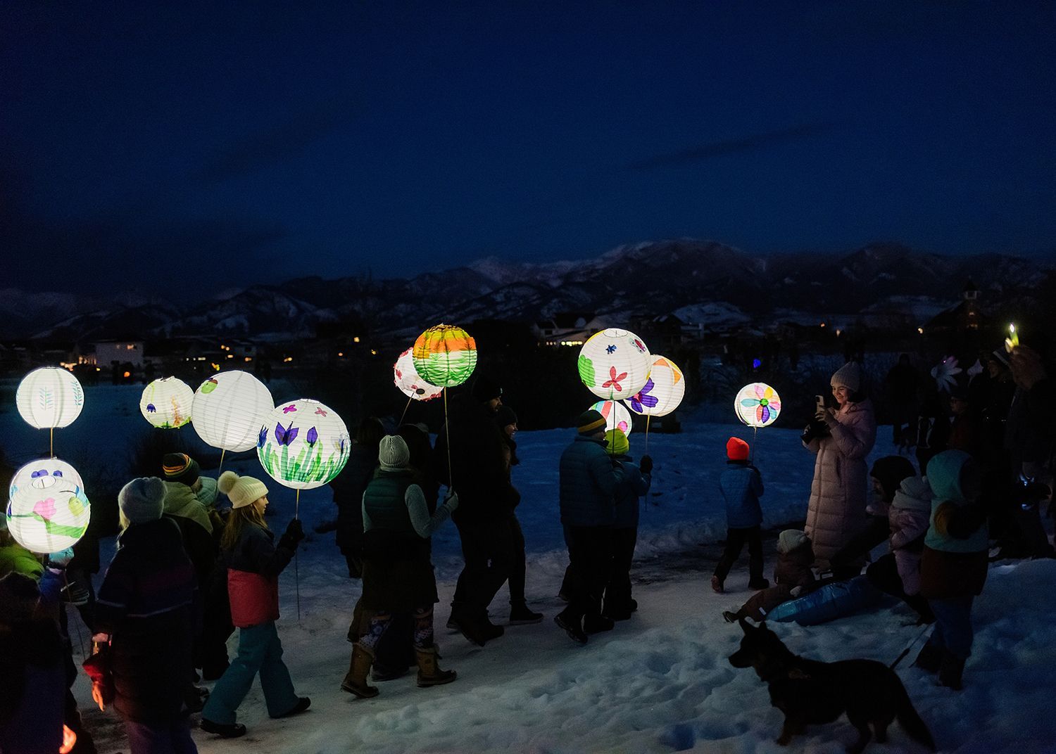 Winter Bloom Lantern Parade illuminated the darkness with joy and light. The parade included hundreds of glowing lanterns created and carried by Gallatin Valley artists and community members, accompanied by singers from the Bozeman Symphonic Choir with members of the Greater Yellowstone Threshold Choir.