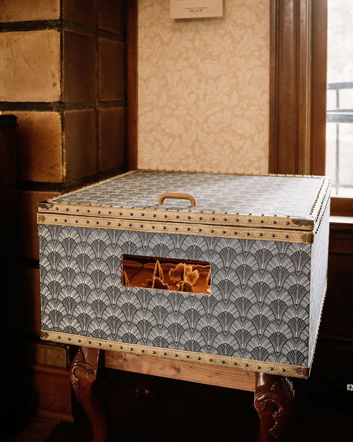 Yan Lai Kung emigrated from China to Montana in 1888, bringing with her a strange collection. She lived to 103 years old and remained intensely private about these pieces. Even her own grandchildren—who grew up playing with them—could only guess their origins or true purpose. From what we can gather, the artifacts seem to allow the viewer to travel through time and space. The trunk offers glimpses of places and times gone by, like the longing brought on by a photograph of a long-ago home. The bookshelf transports the viewer to a state of atemporality, much like the feeling of getting lost for hours in a really good book. Research has been impeded by these time shifting qualities, causing scientists to lose track of days at a time.